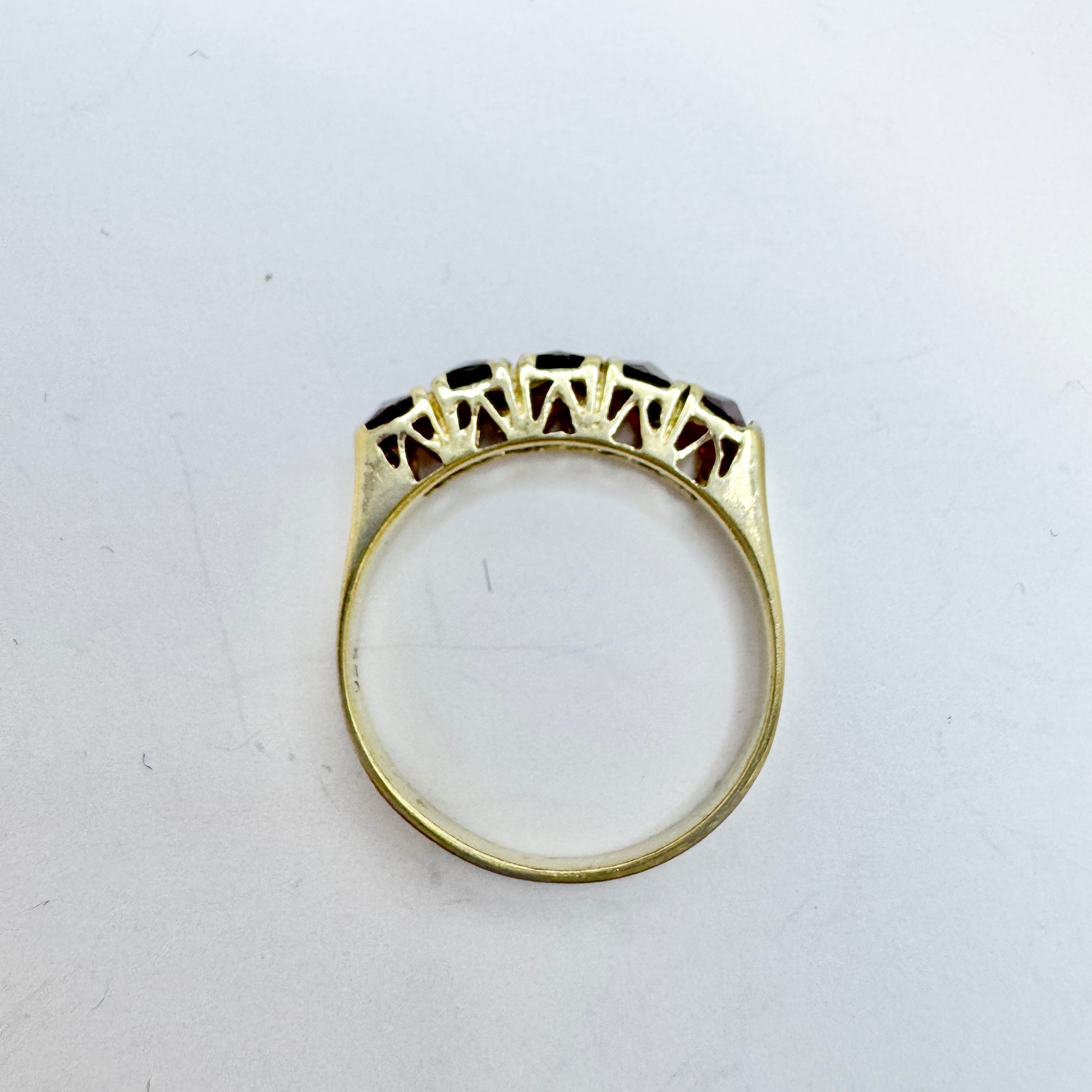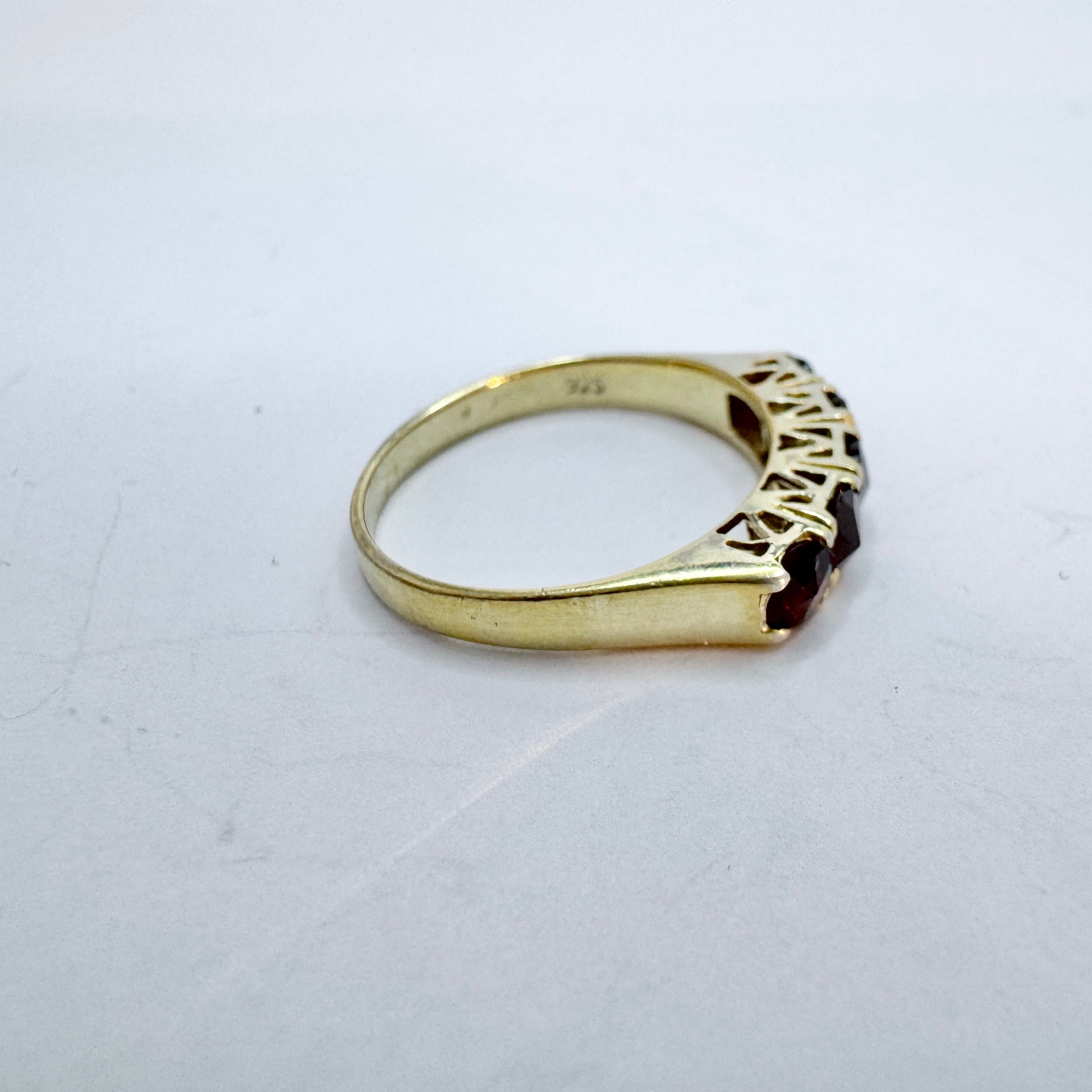 Very charming vintage gold gilt solid silver garnet ring. Hallmarked for sterling silver (925). Continental Europe c 1950s