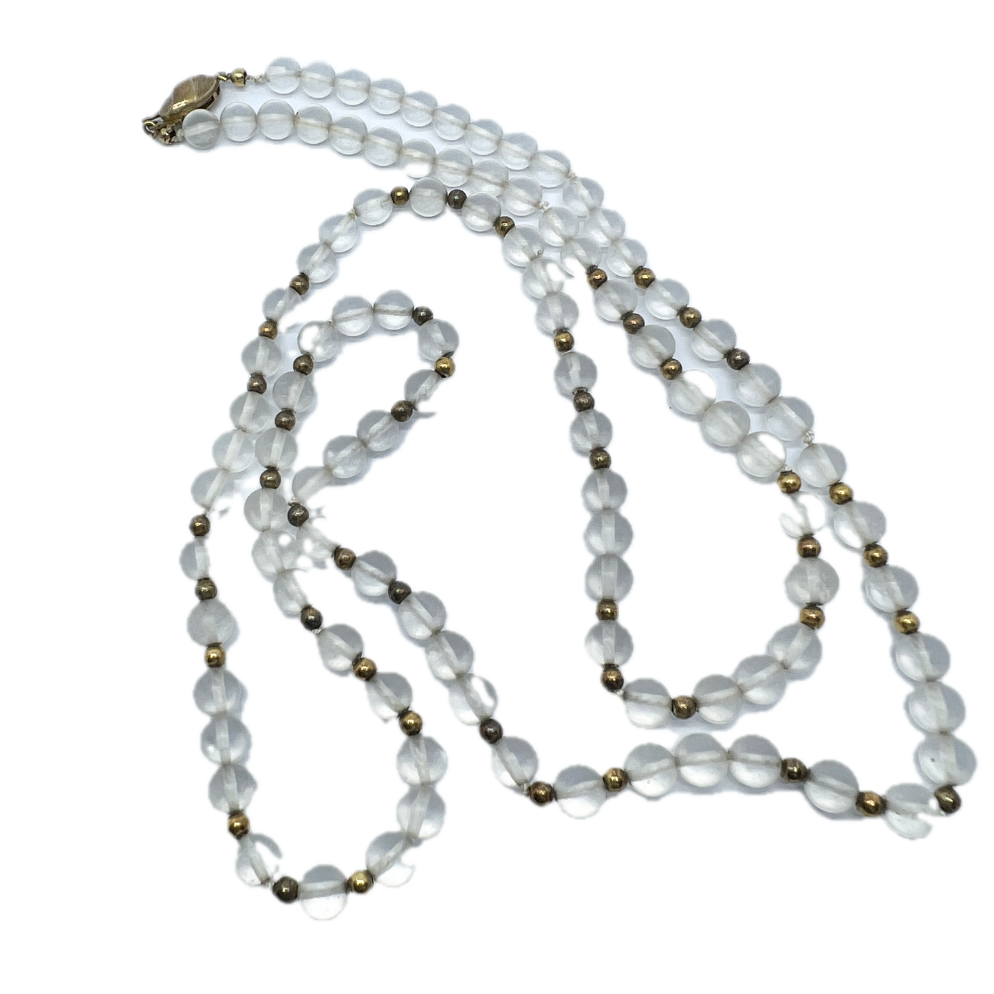 Very charming vintage mid-century gilt 835 silver rock crystal beads necklace. Hallmarked for 835 silver. Continental Europe c 1950s.