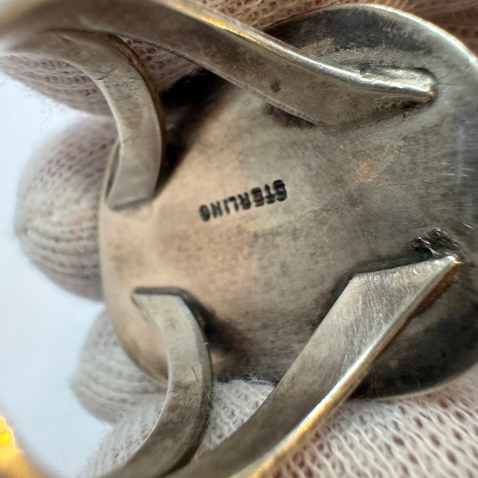 Vintage c 1960s Sterling Silver Red Hardstone Unisex Ring. Prob. the USA