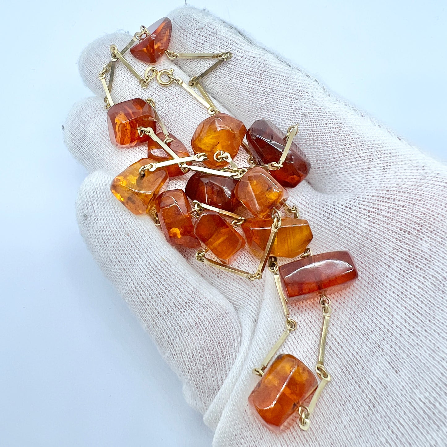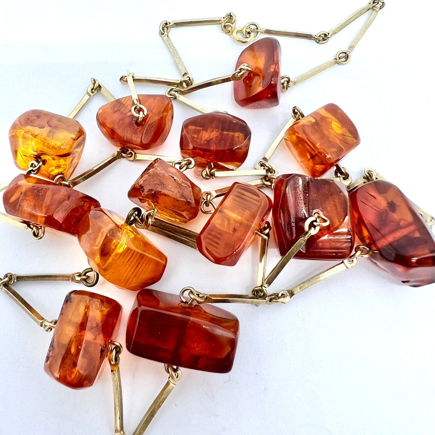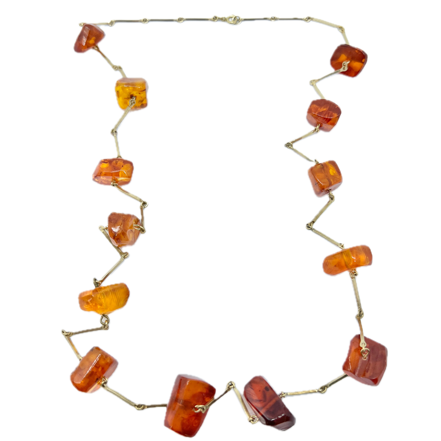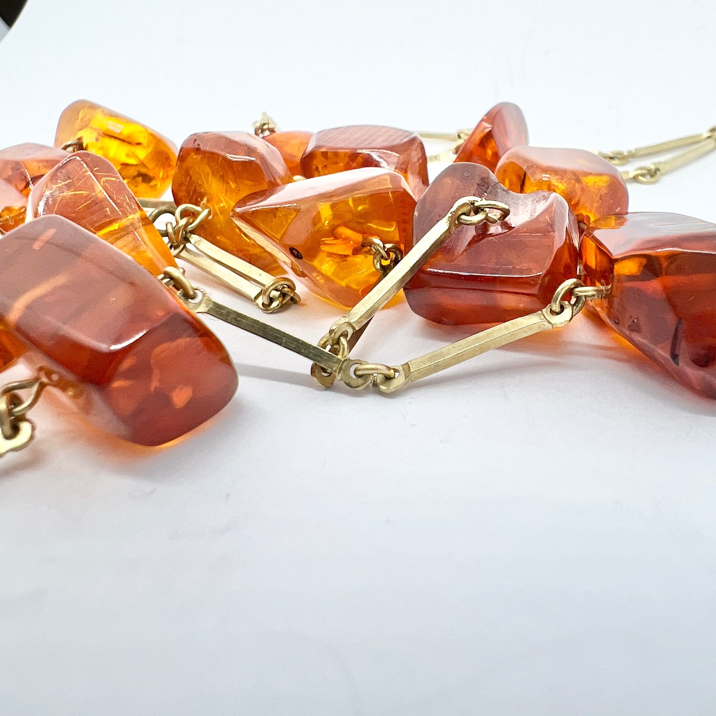 Beautiful vintage gilt silver amber necklace. Indistinct hallmark.