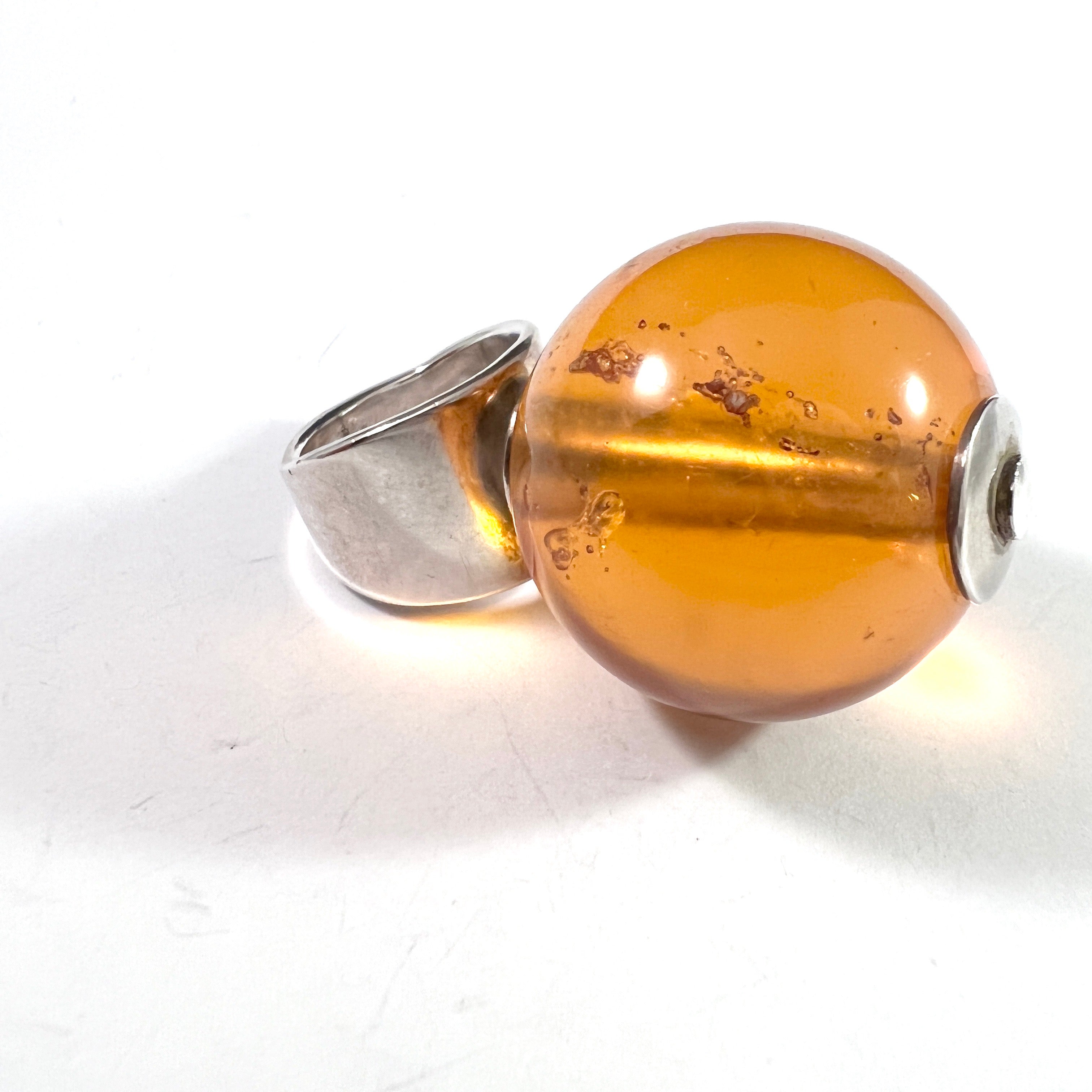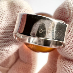 Very charming and bold vintage sterling silver amber ring. Hallmarked for sterling silver.