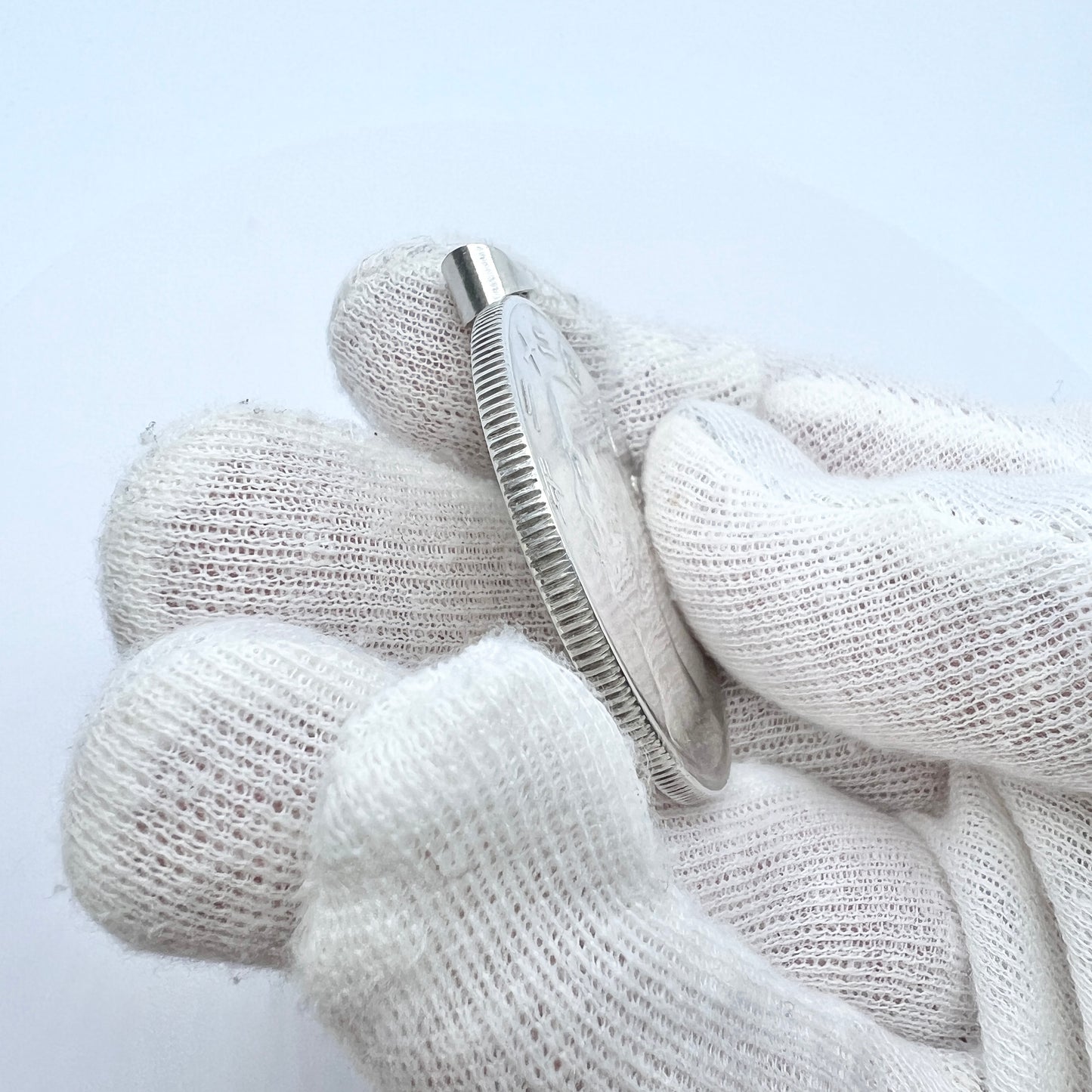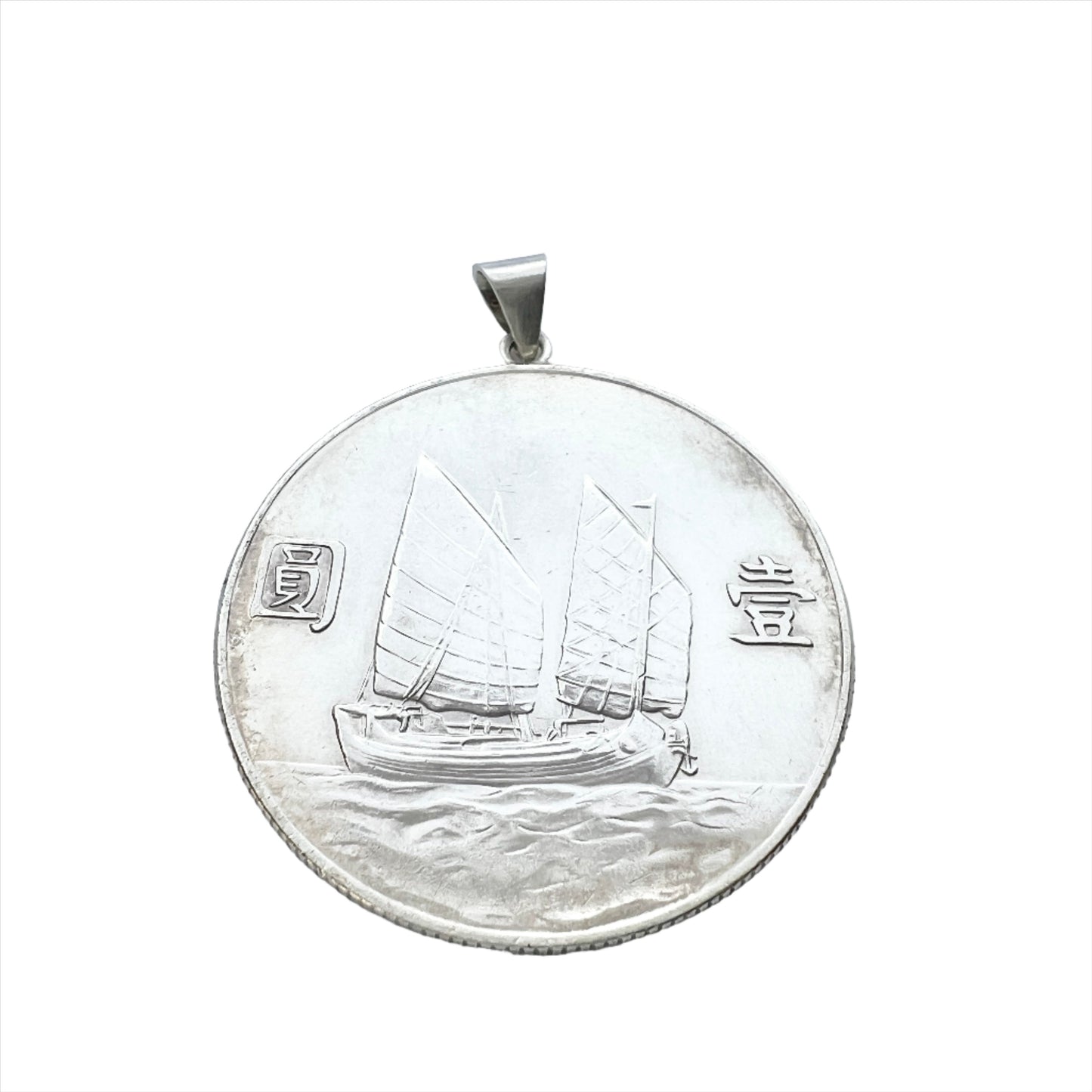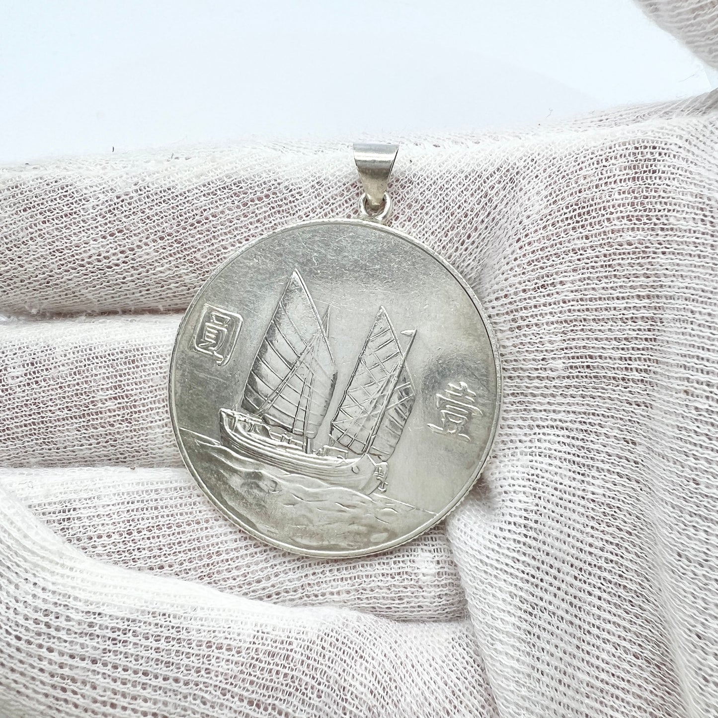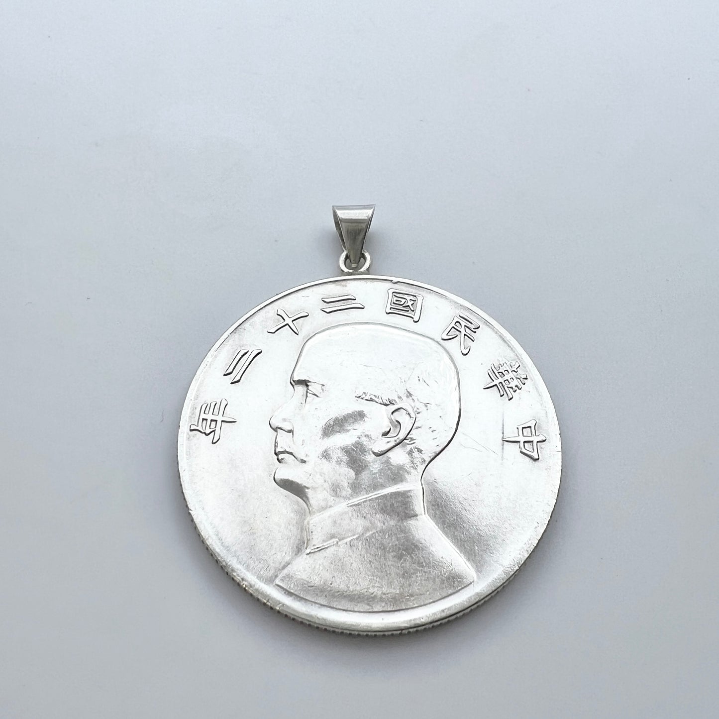 Vintage Large Solid Silver Chinese Coin Pendant.