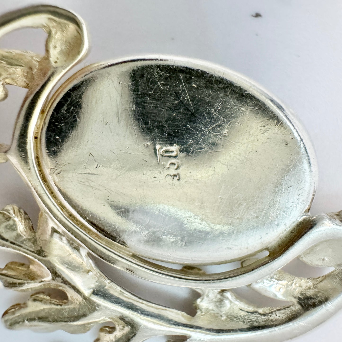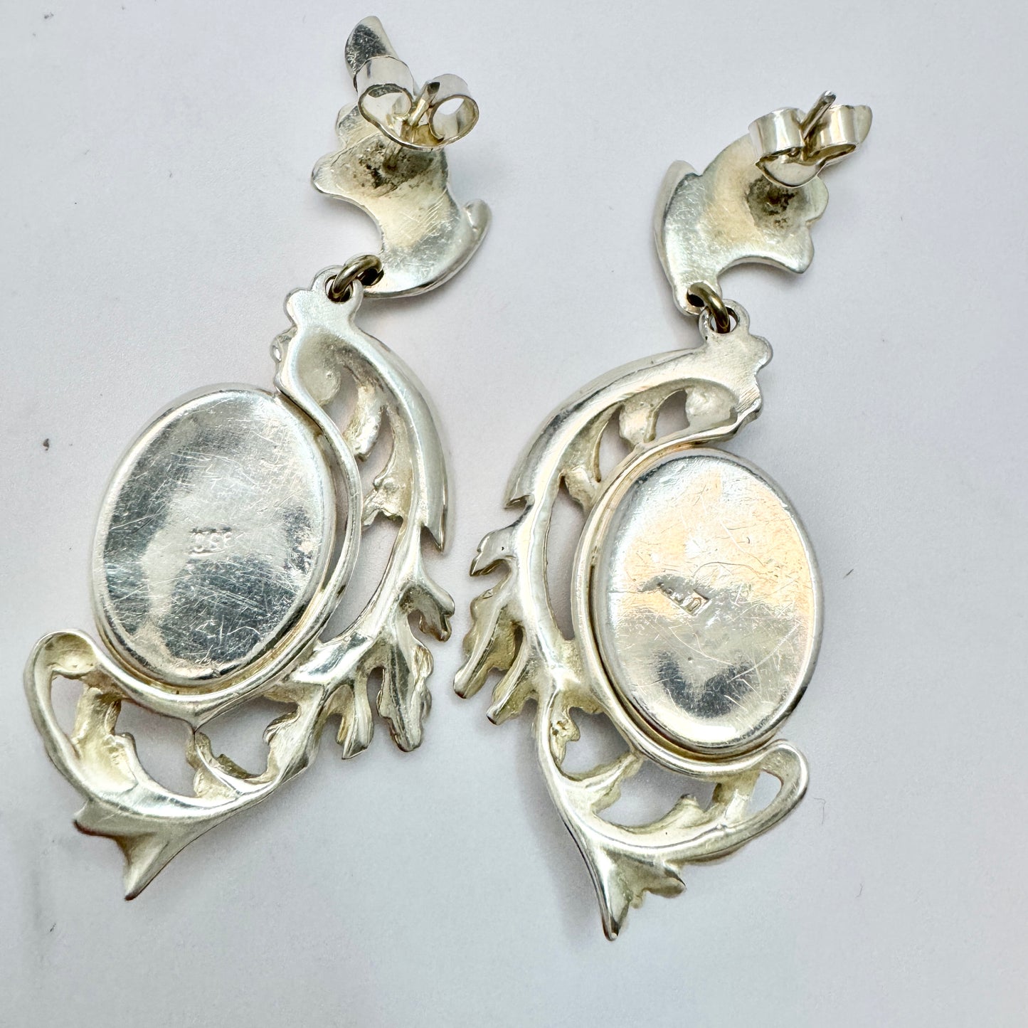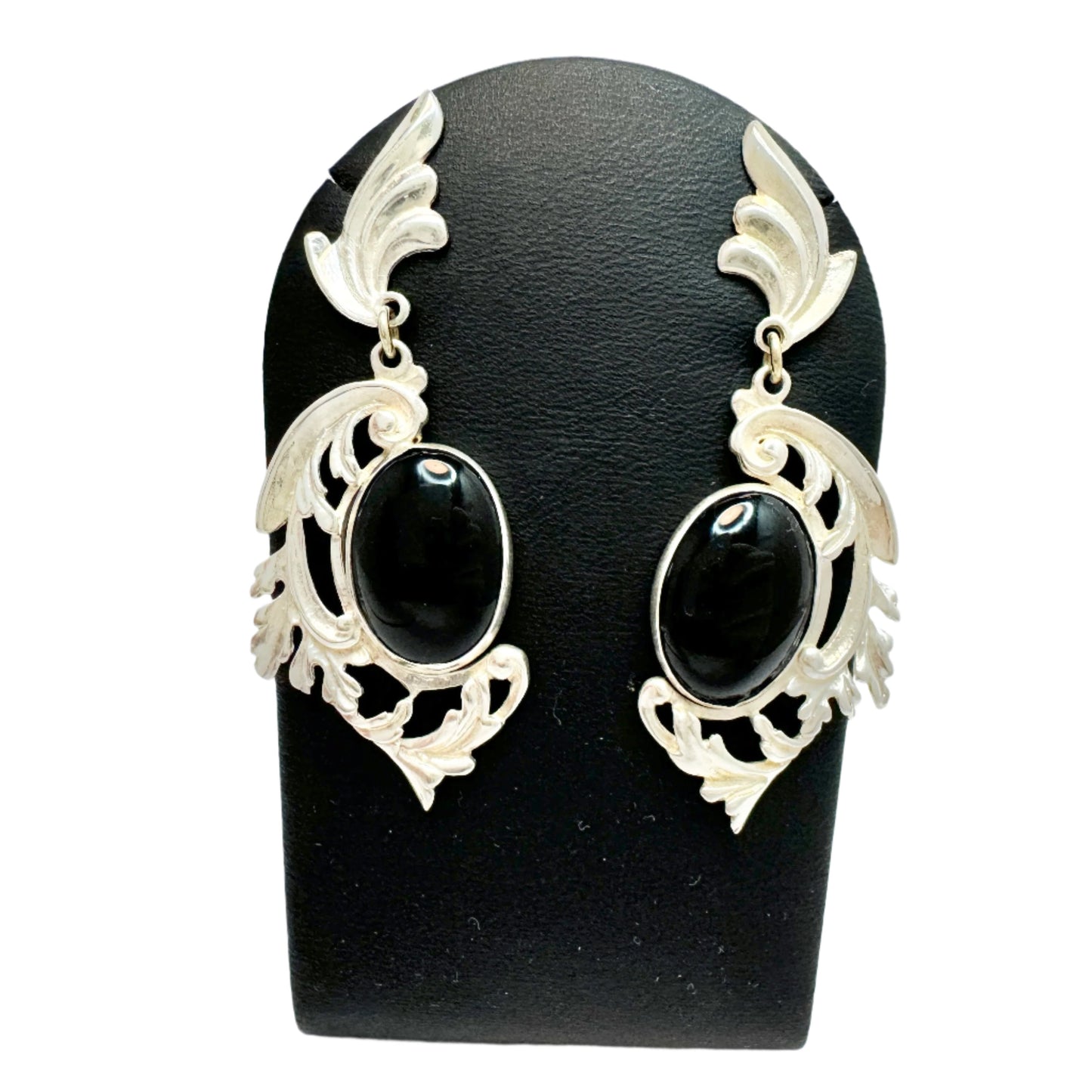 Vintage Large Sterling 950 Silver Onyx Earrings.