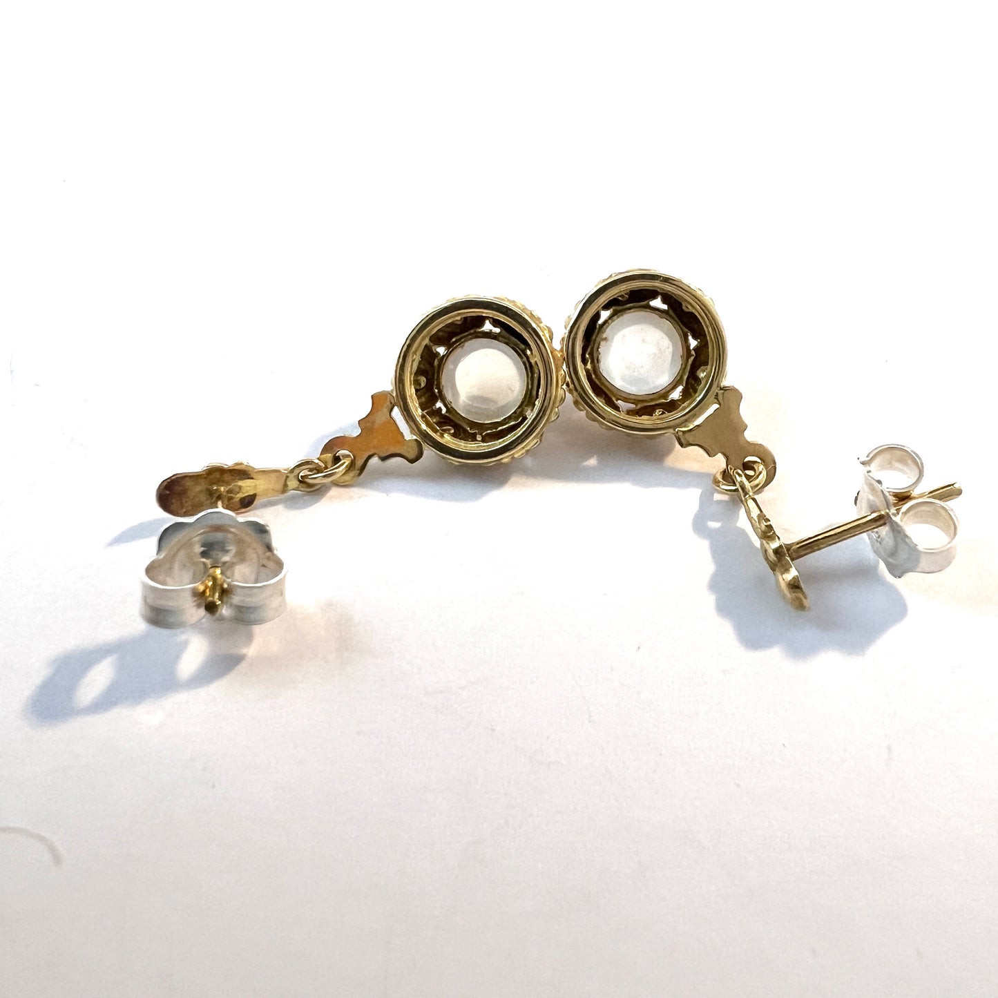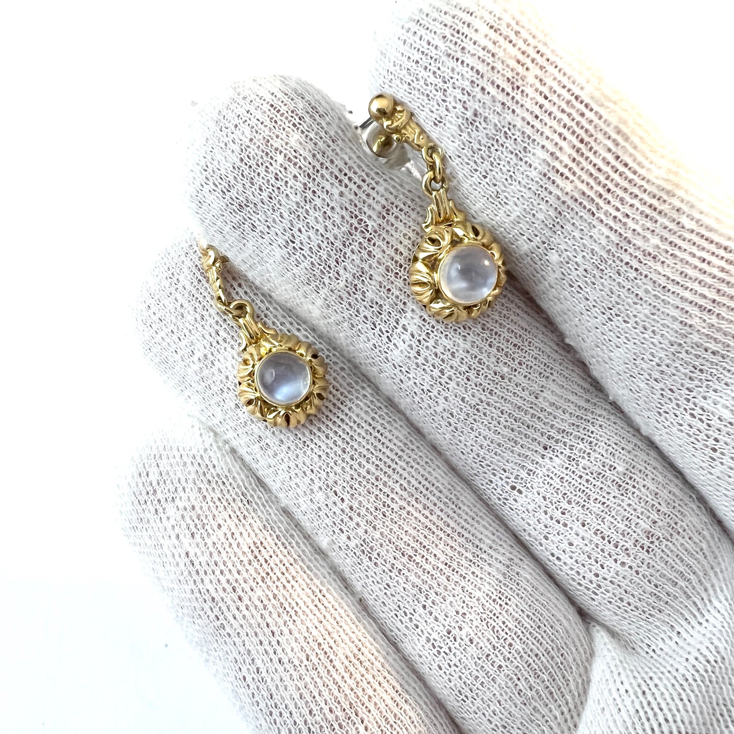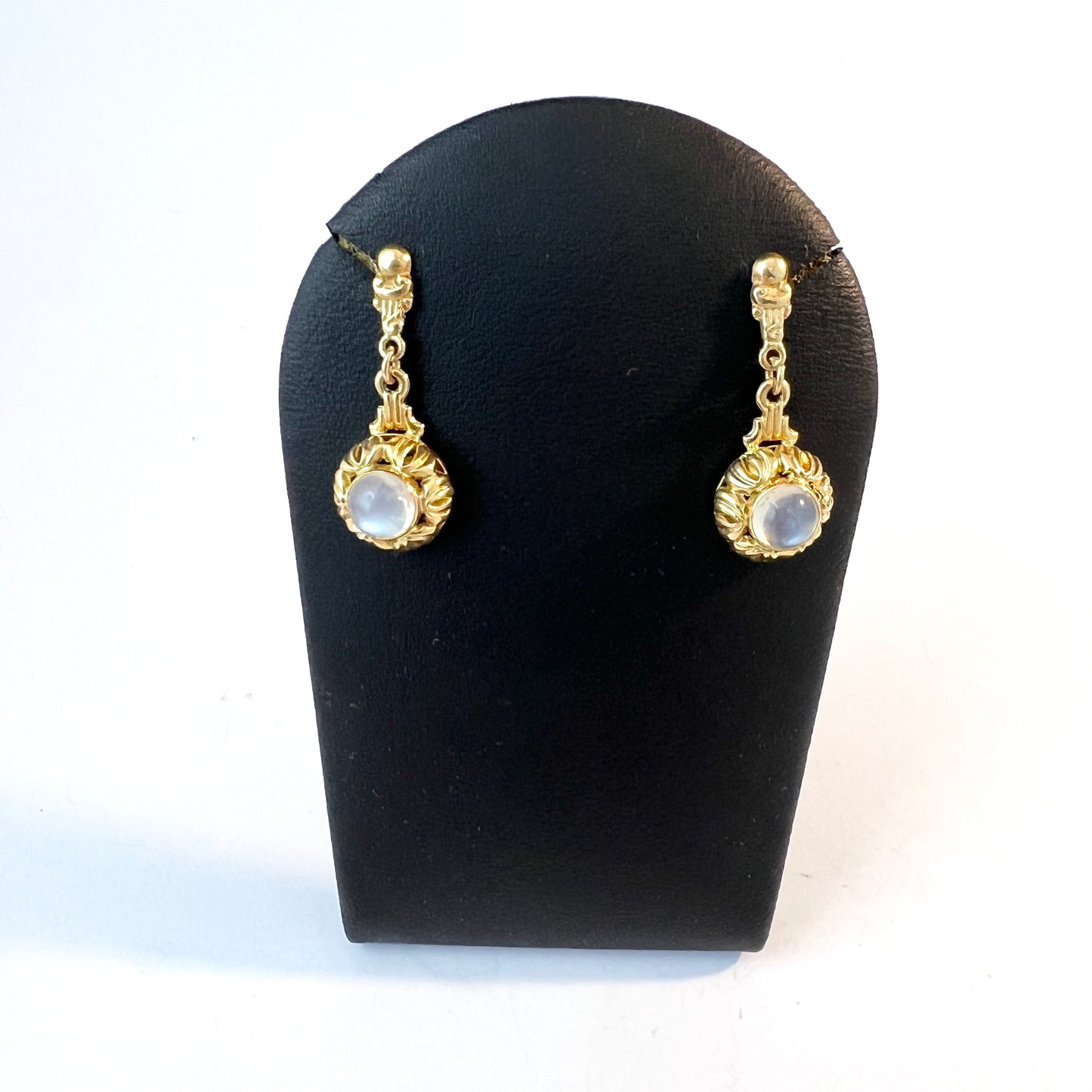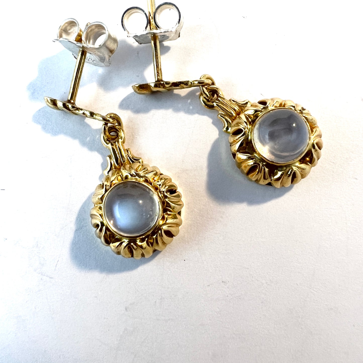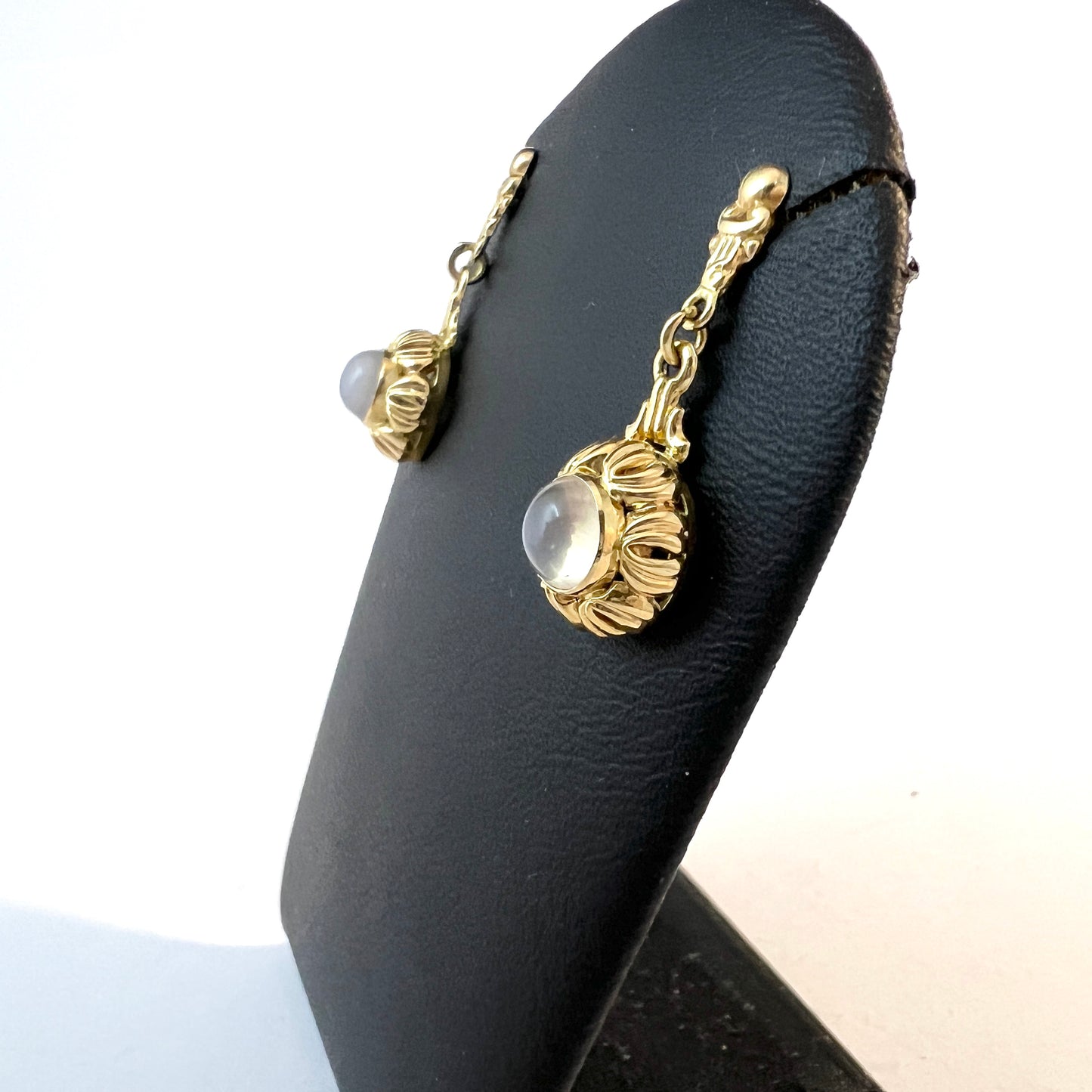 Vintage Mid-century 18k Gold Moonstone Earrings.