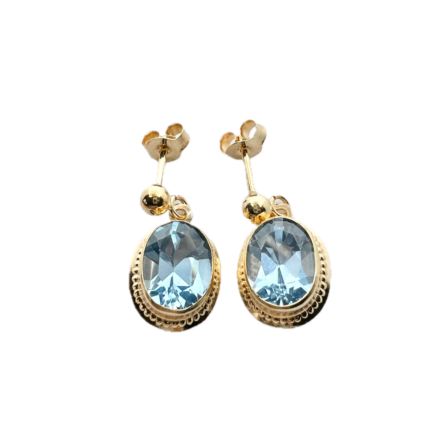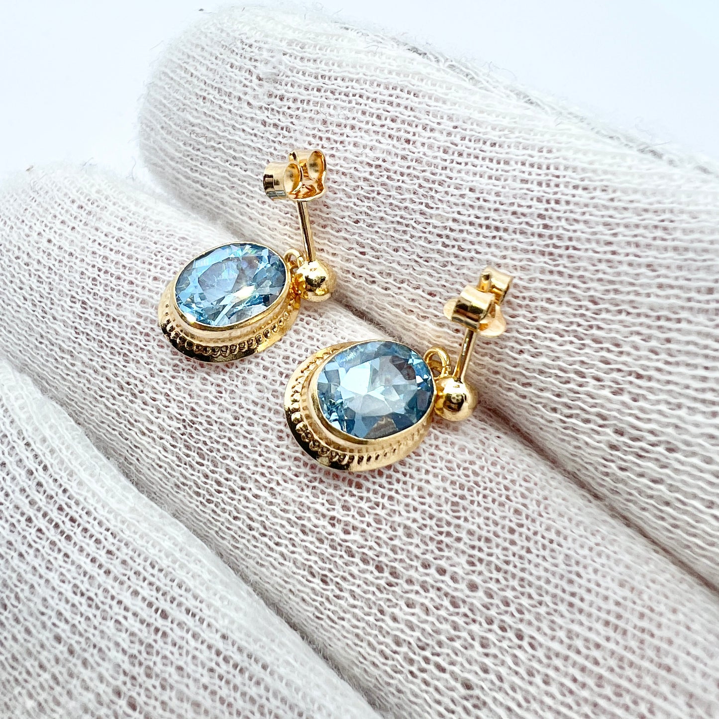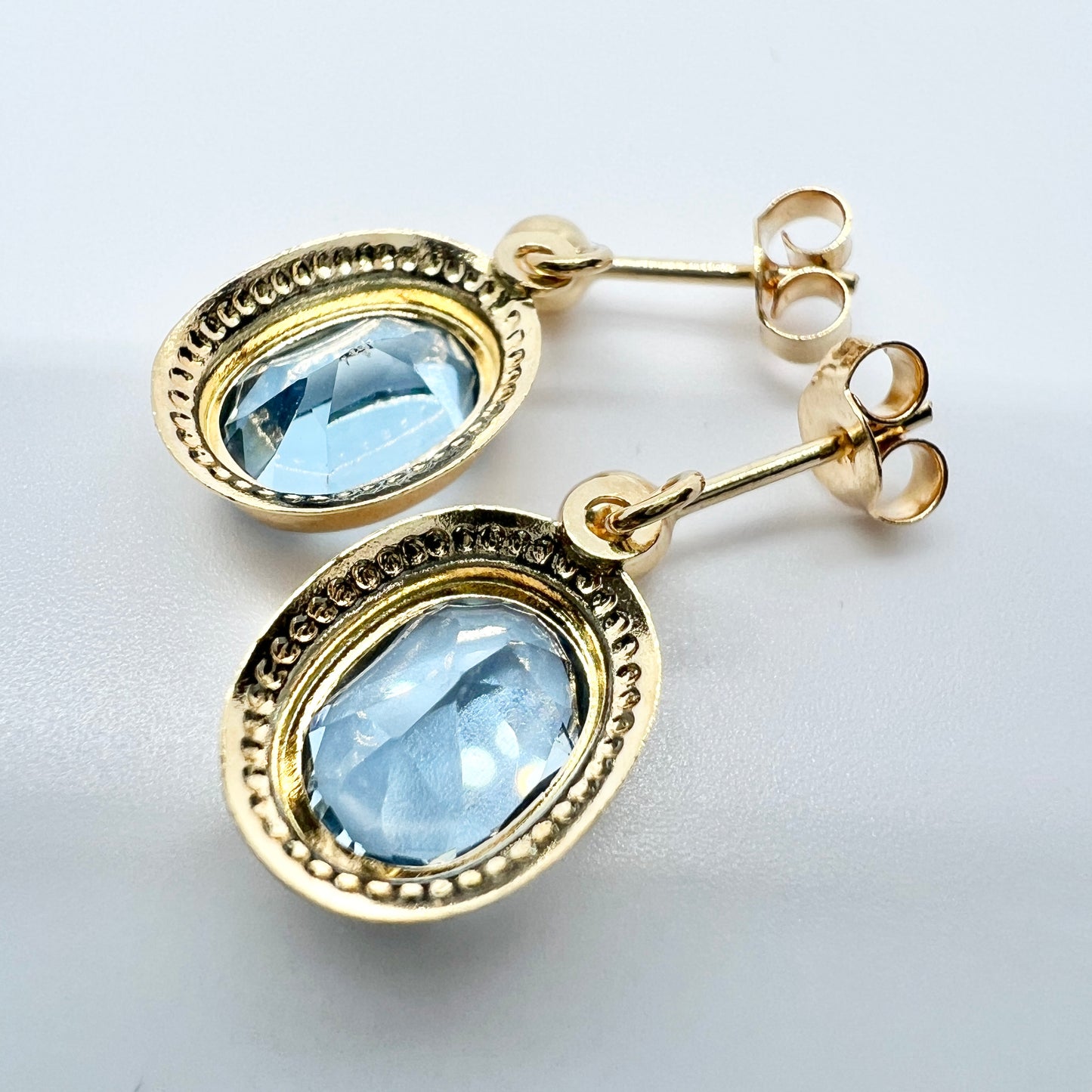 Very charming vintage 18k gold synthetic spinel earrings. Hallmarked for 18k gold (750). Vintage, 1950-60s