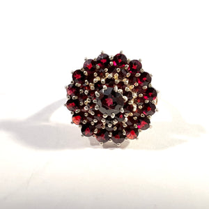 Vintage Mid Century Solid 830 Silver Garnet Cluster Ring.