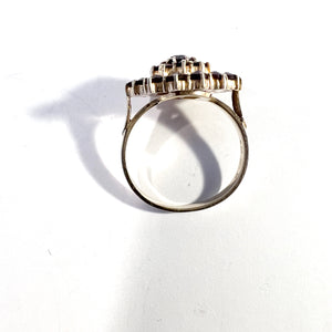 Beautiful vintage mid century solid silver garnet cluster ring. Hallmarked with Swedish import marks, 830S and an unidentified makers mark. Made c 1950s, Germany or Denmark.