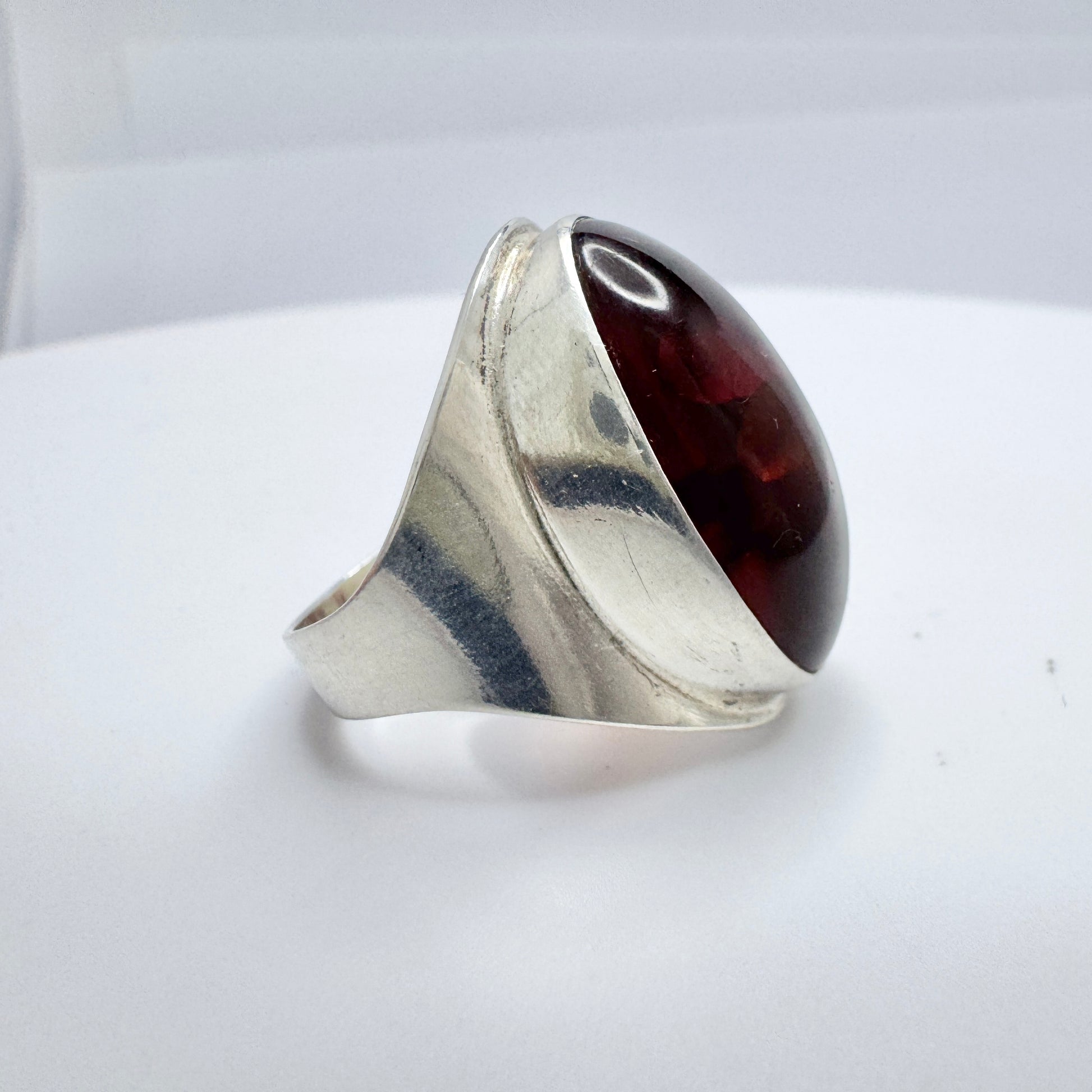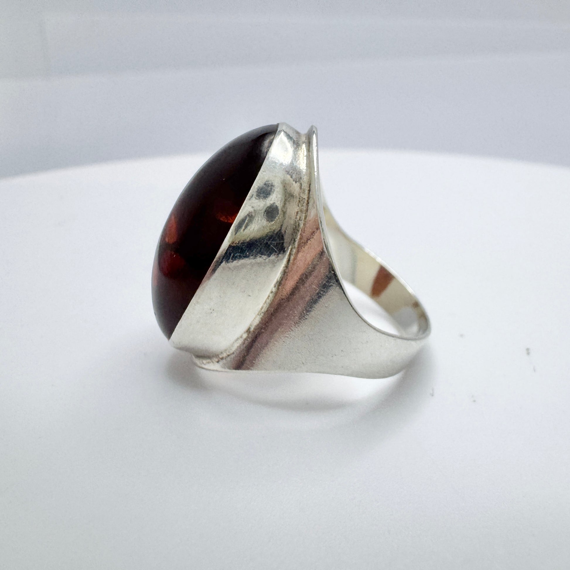 Beautiful vintage solid silver amber ring. Hallmarked "830S". Probably Germany or Denmark, vintage.