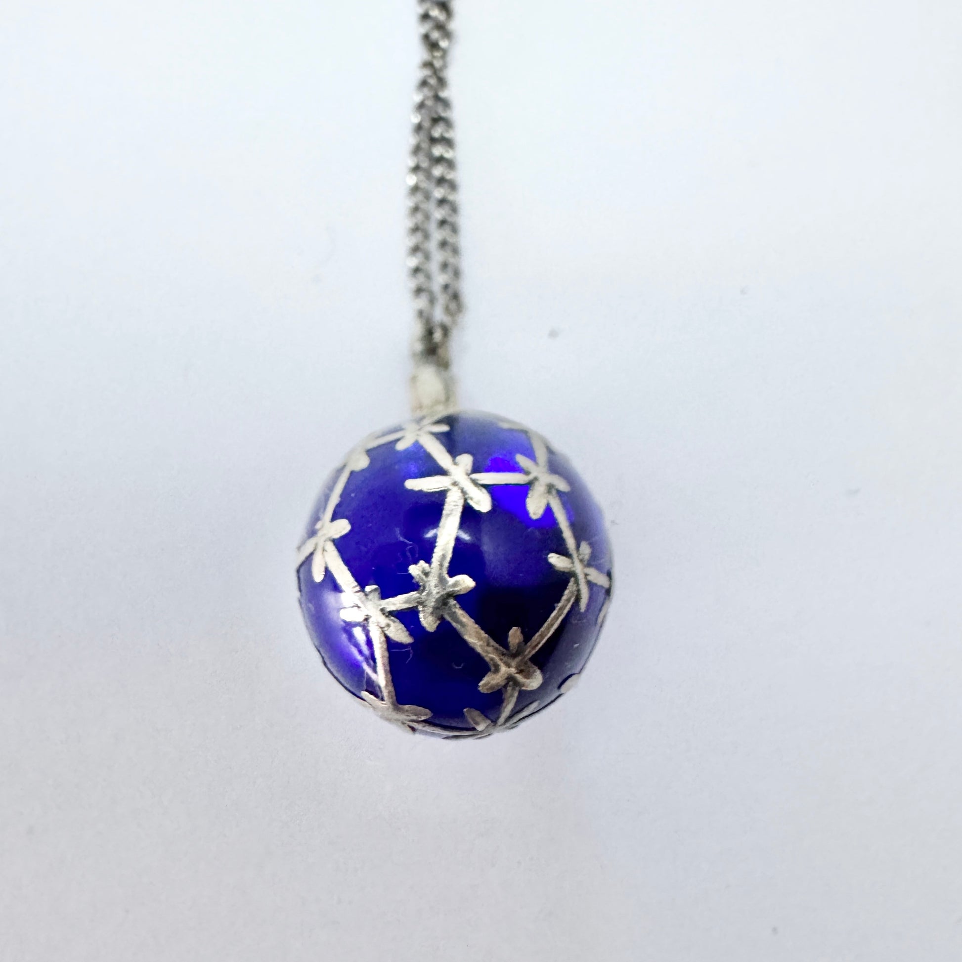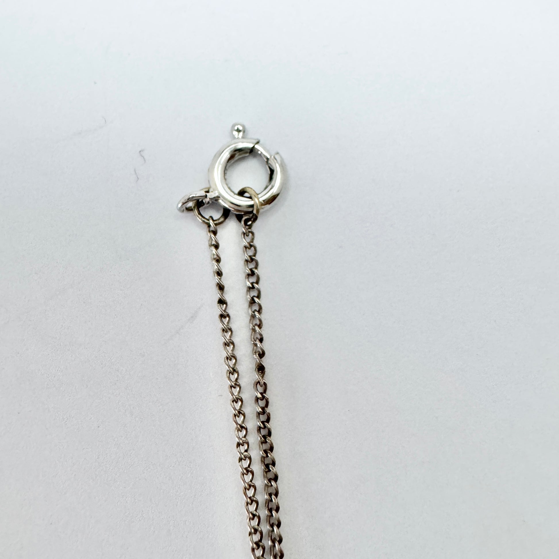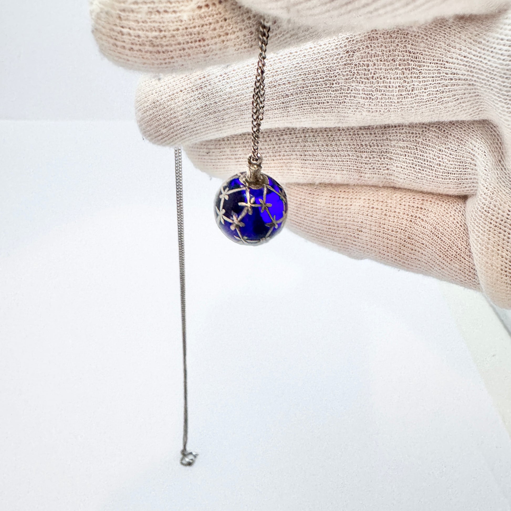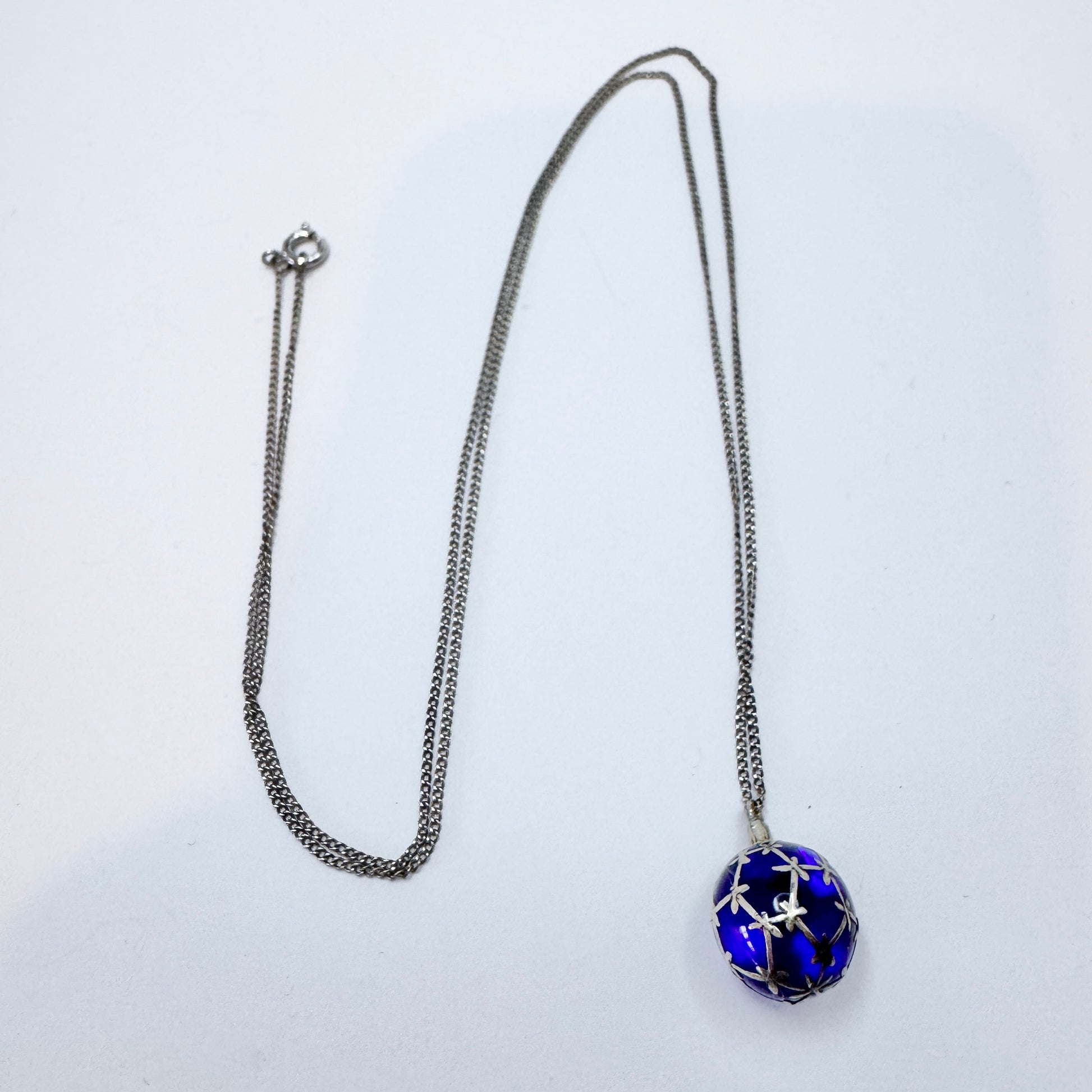 Charming vintage solid silver blue glass pendant necklace. Apparently unmarked.