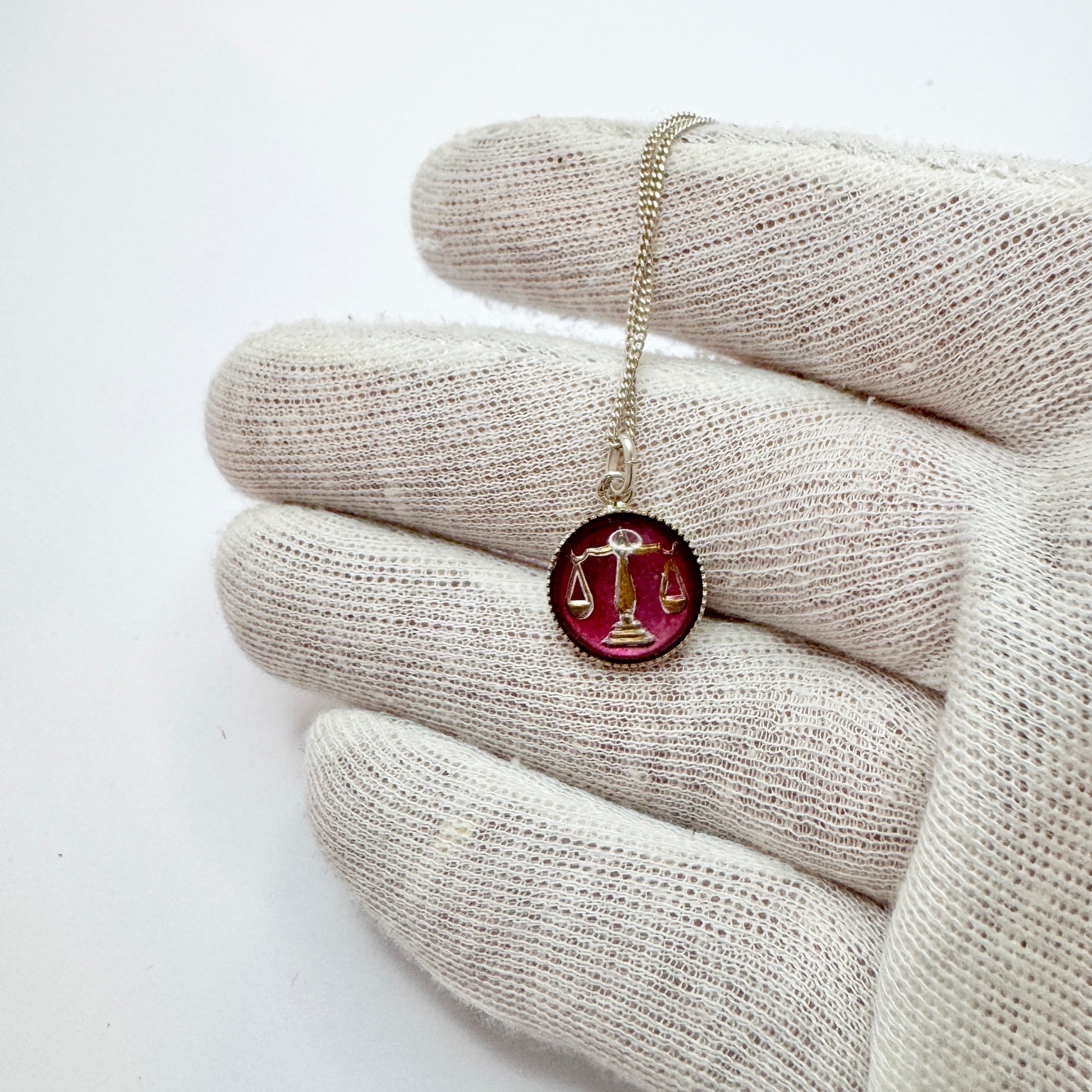 Vintage Solid Silver Enamel Zodiac Libra Pendant Necklace.