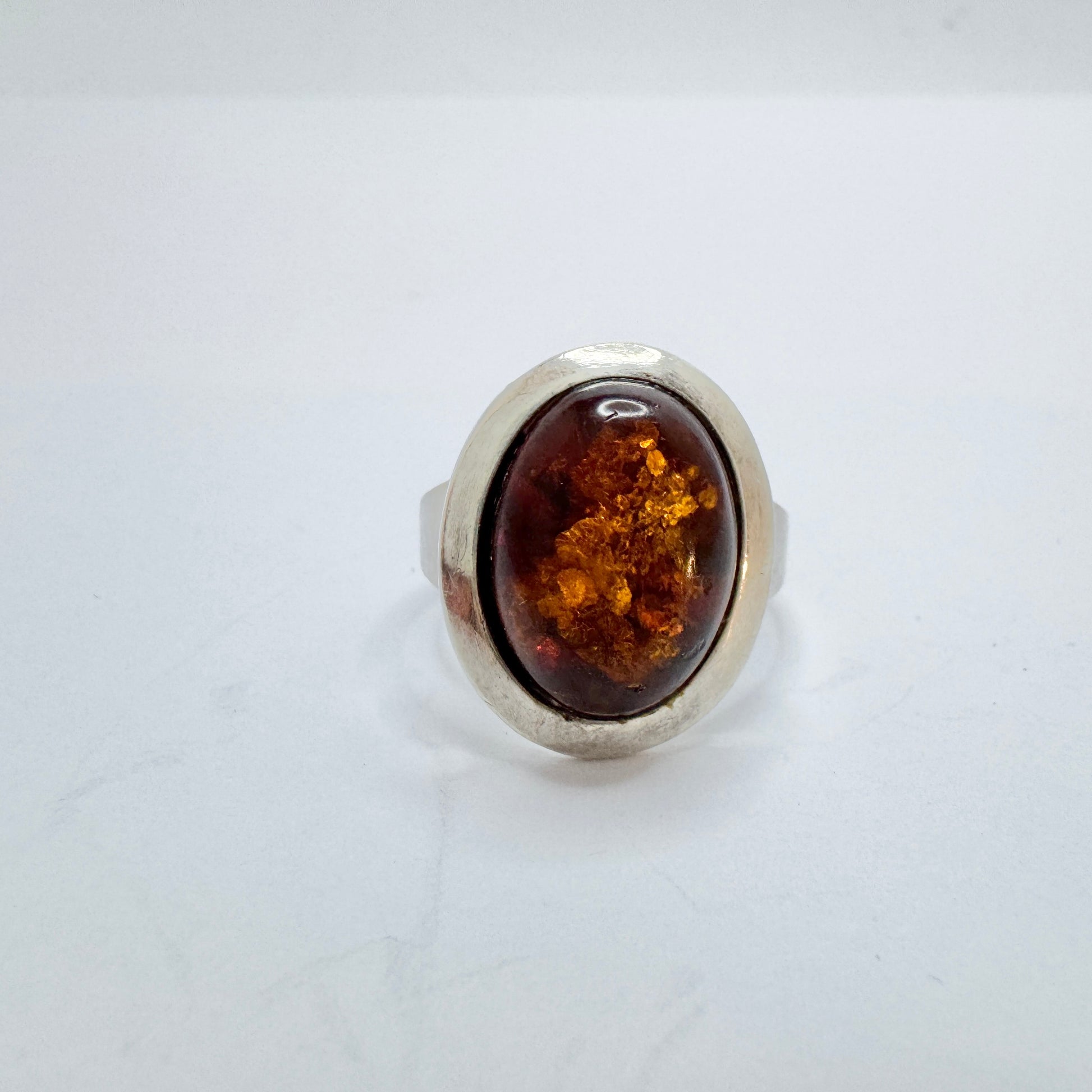 Vintage Sterling Silver Amber Ring.