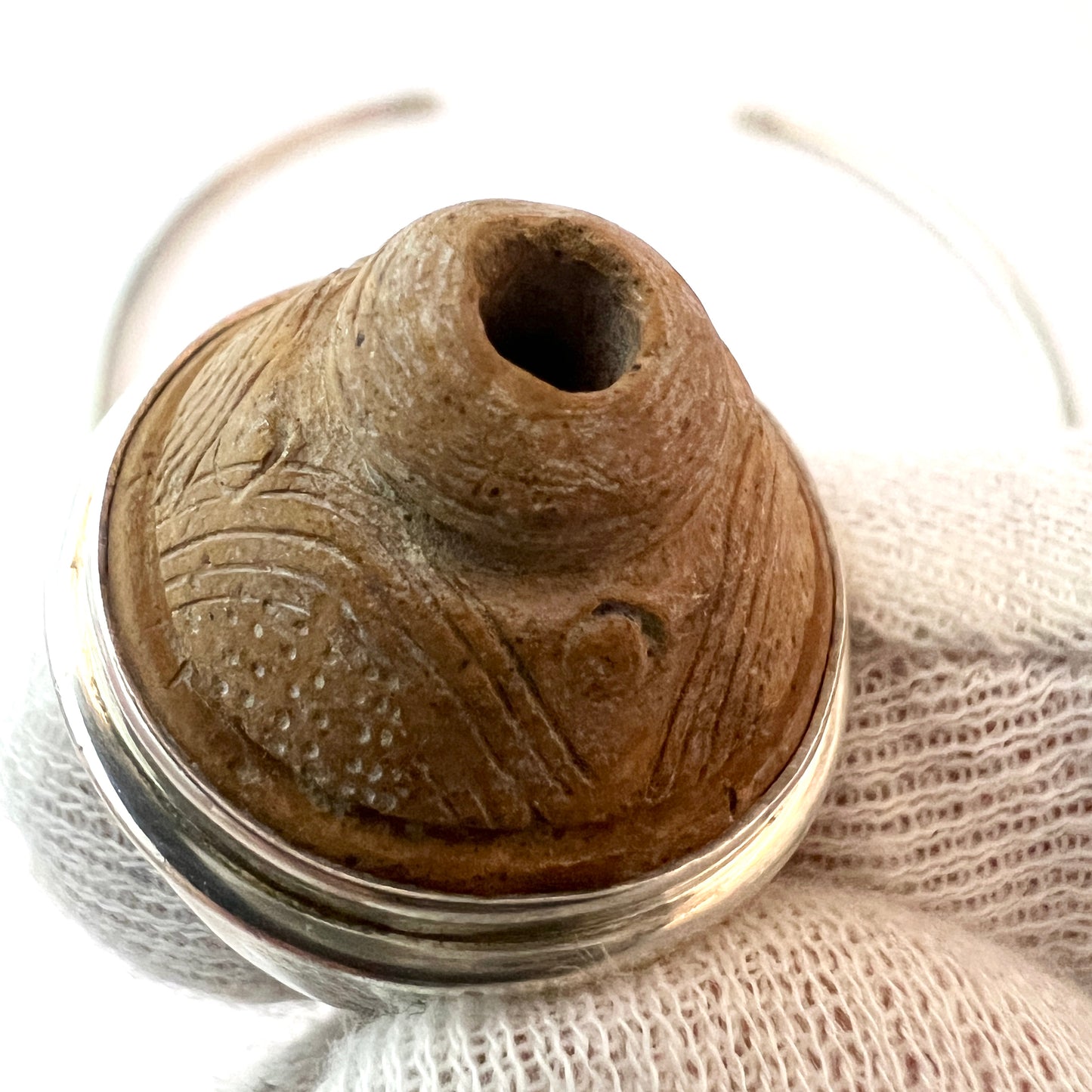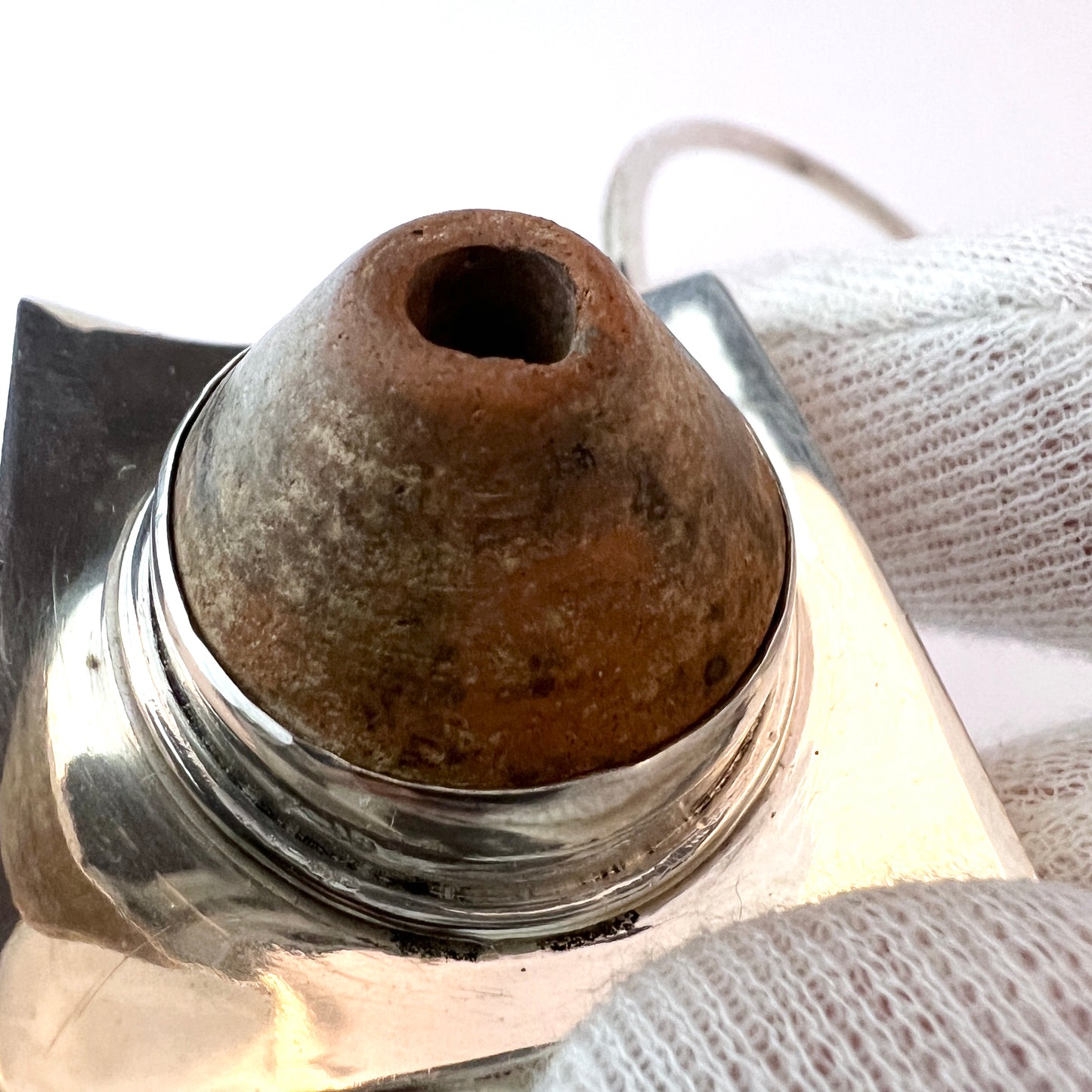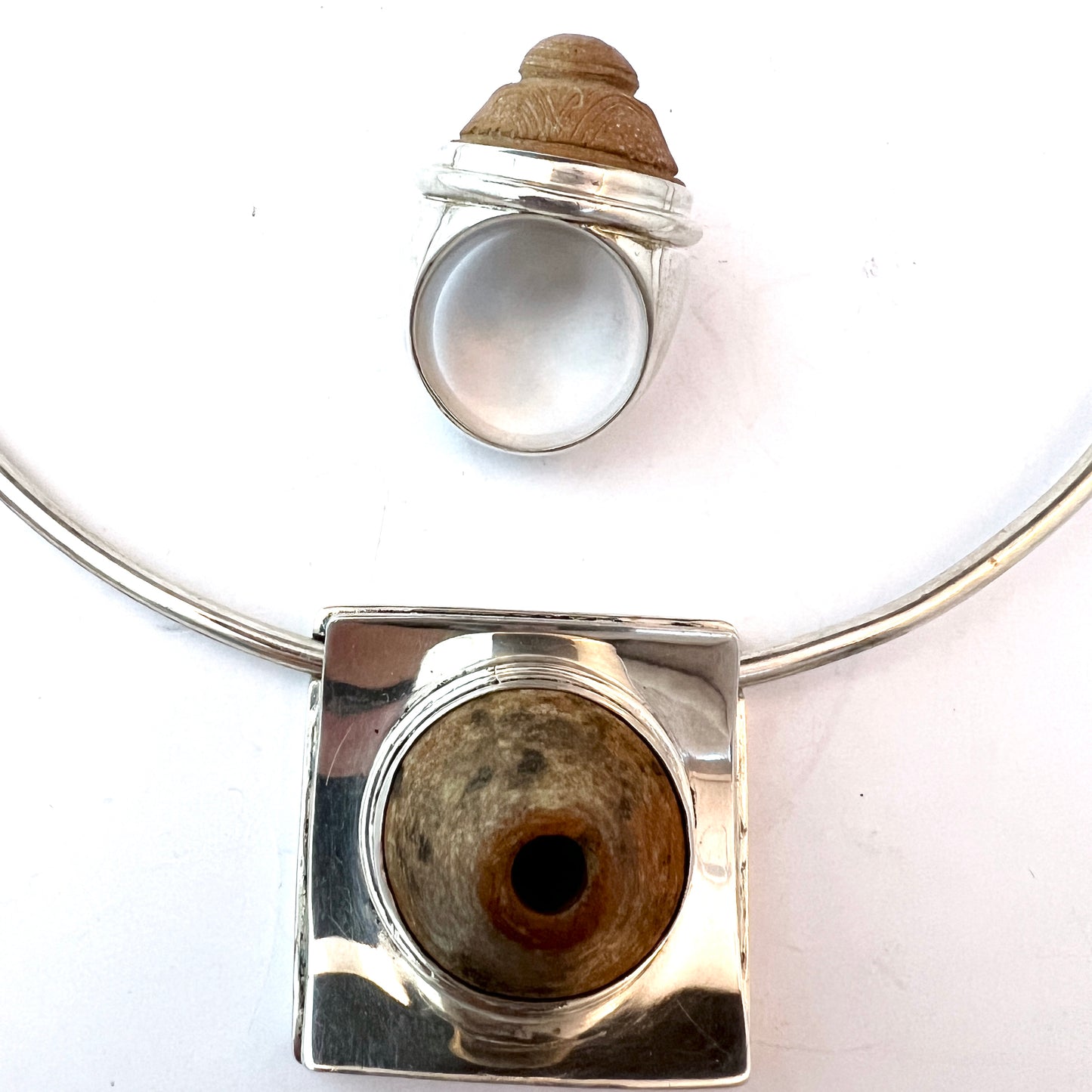 Vintage Sterling Silver Ancient (?) Ceramic Set. Necklace + Ring.