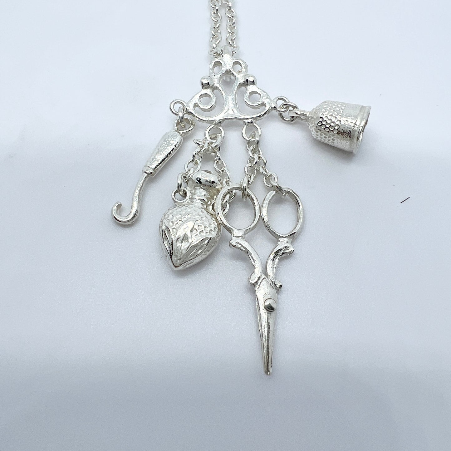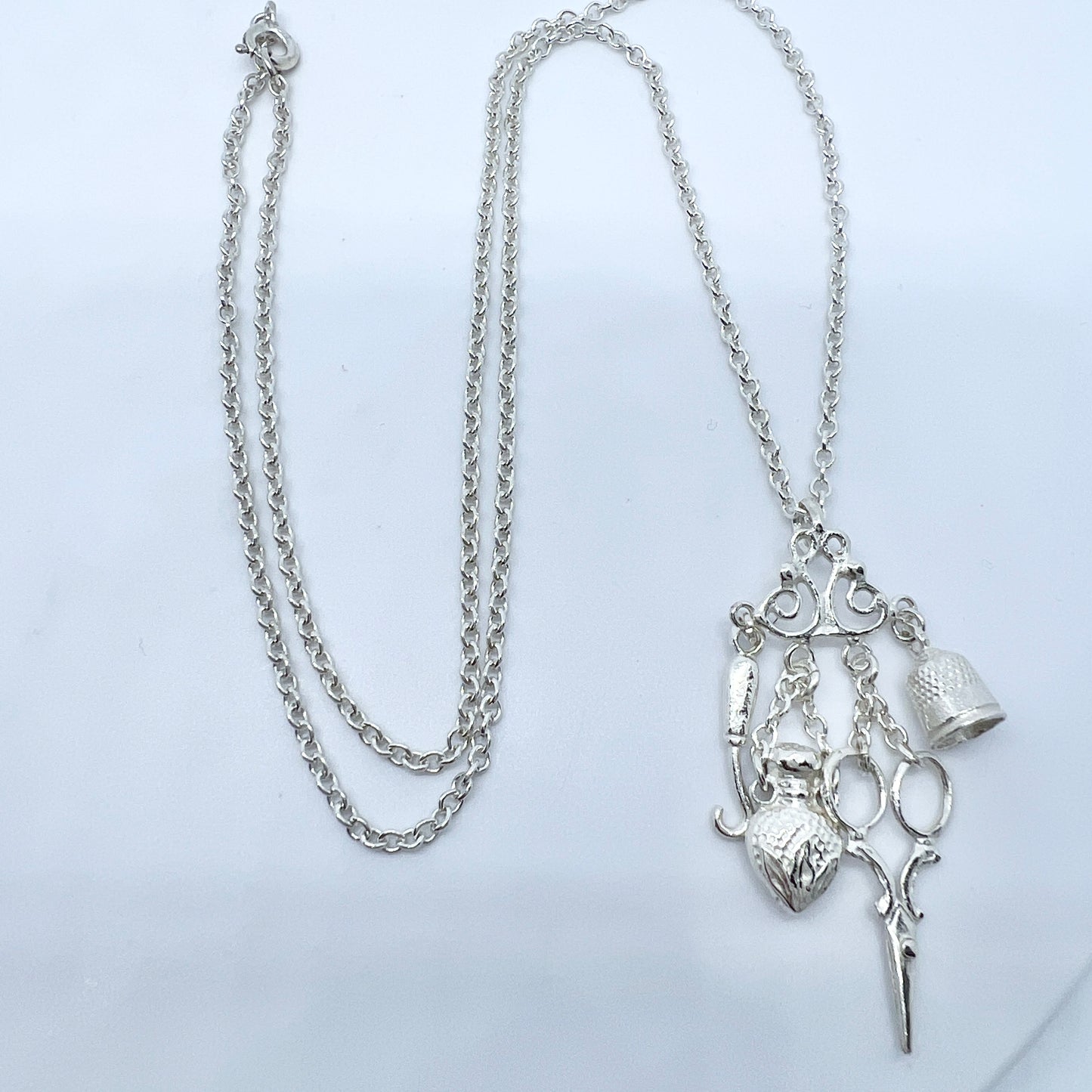 Vintage Sterling Silver Miniature Utensils Pendant Necklace.