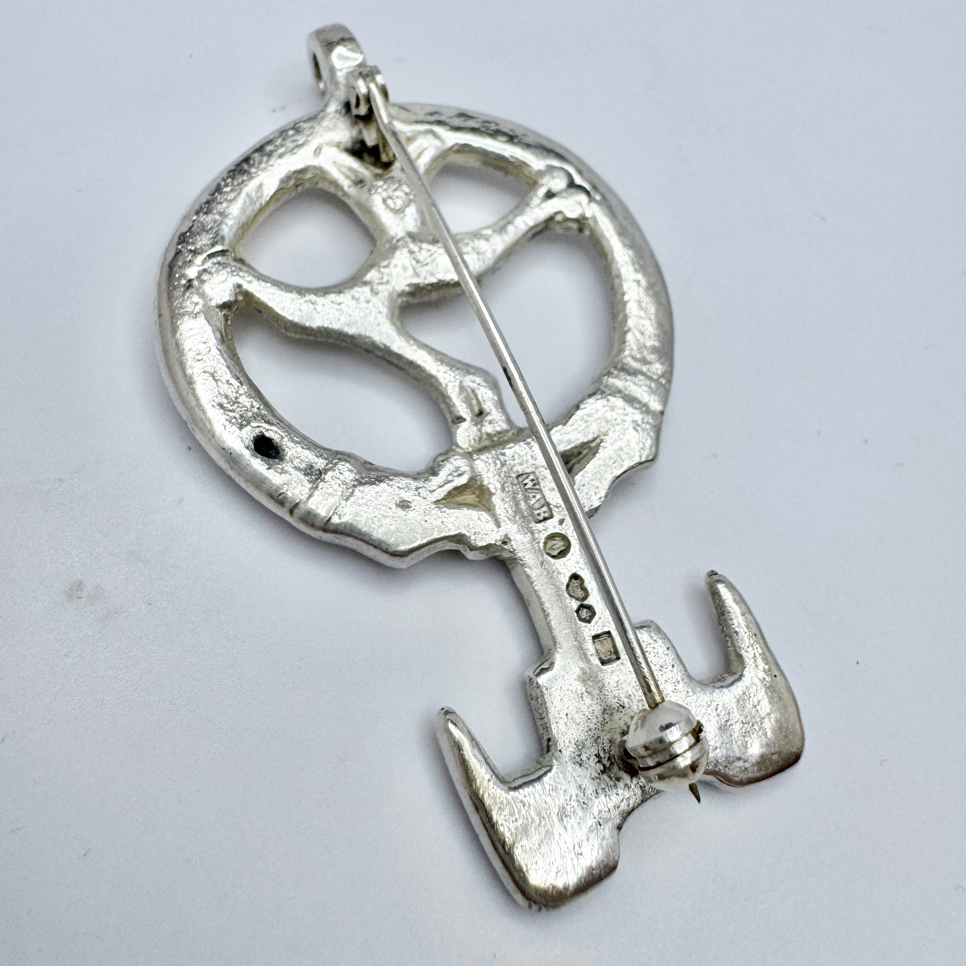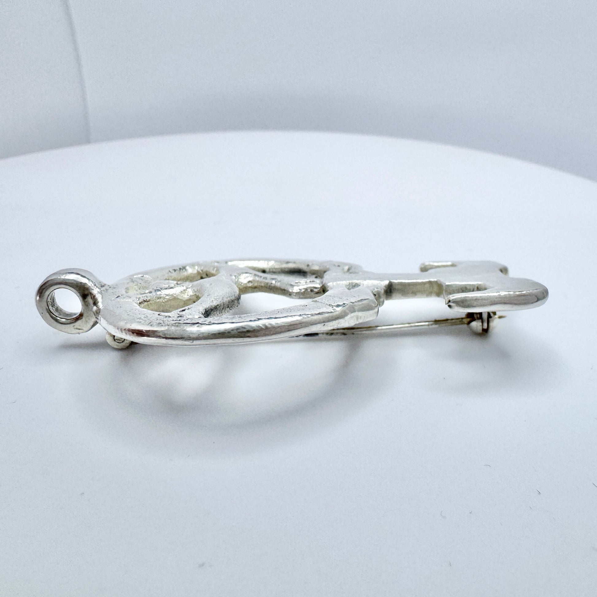 WA Bolin, Sweden 1955. Vintage Sterling Silver Viking Copy Key to Valhalla Brooch Pendant