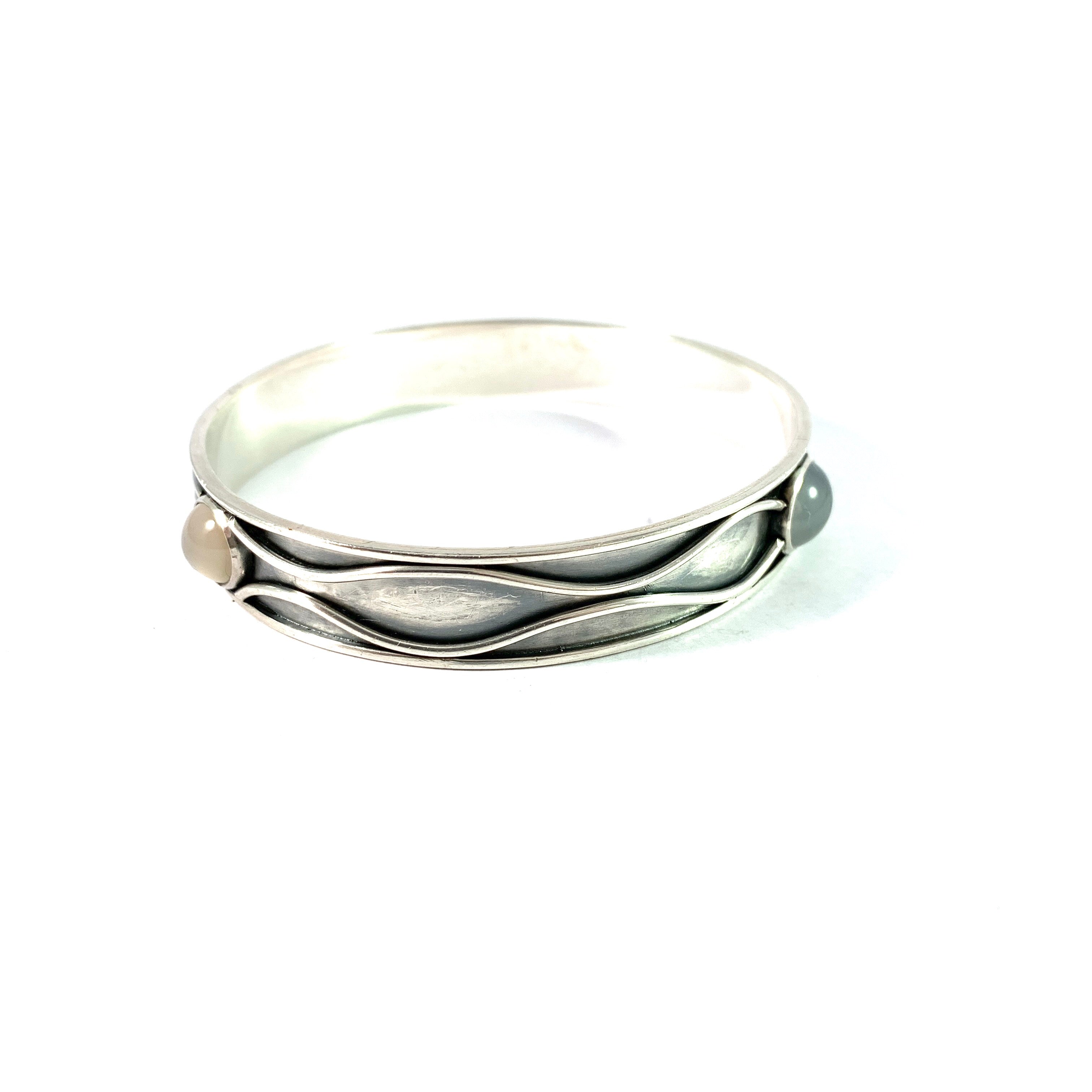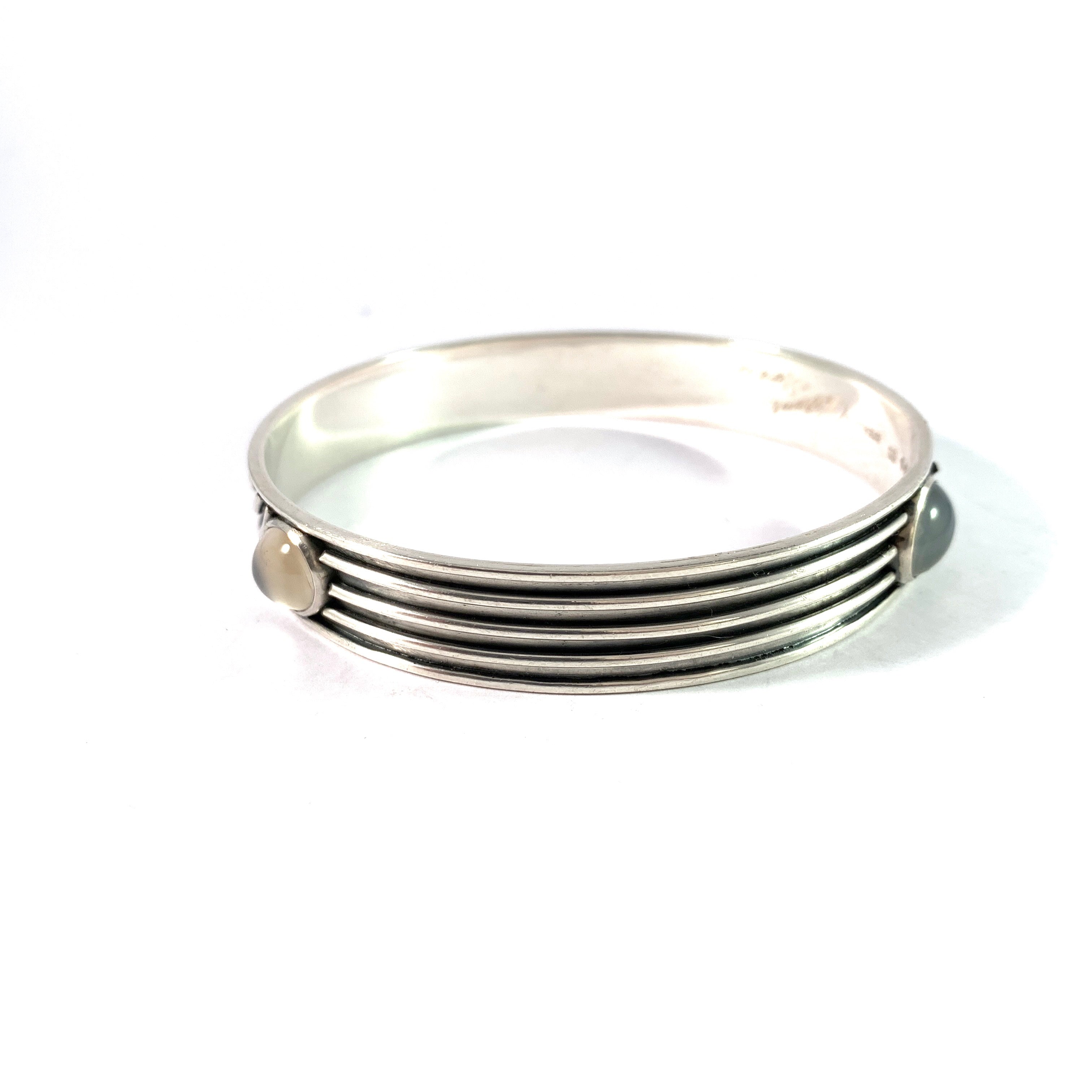 Waldemar Jonsson, Sweden 1955. Vintage Mid Century Modern Sterling Silver Chalcedony Bangle. Signed.
