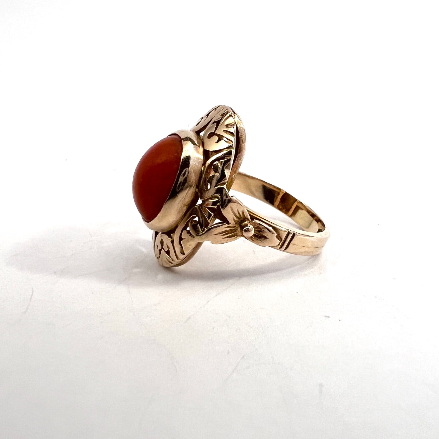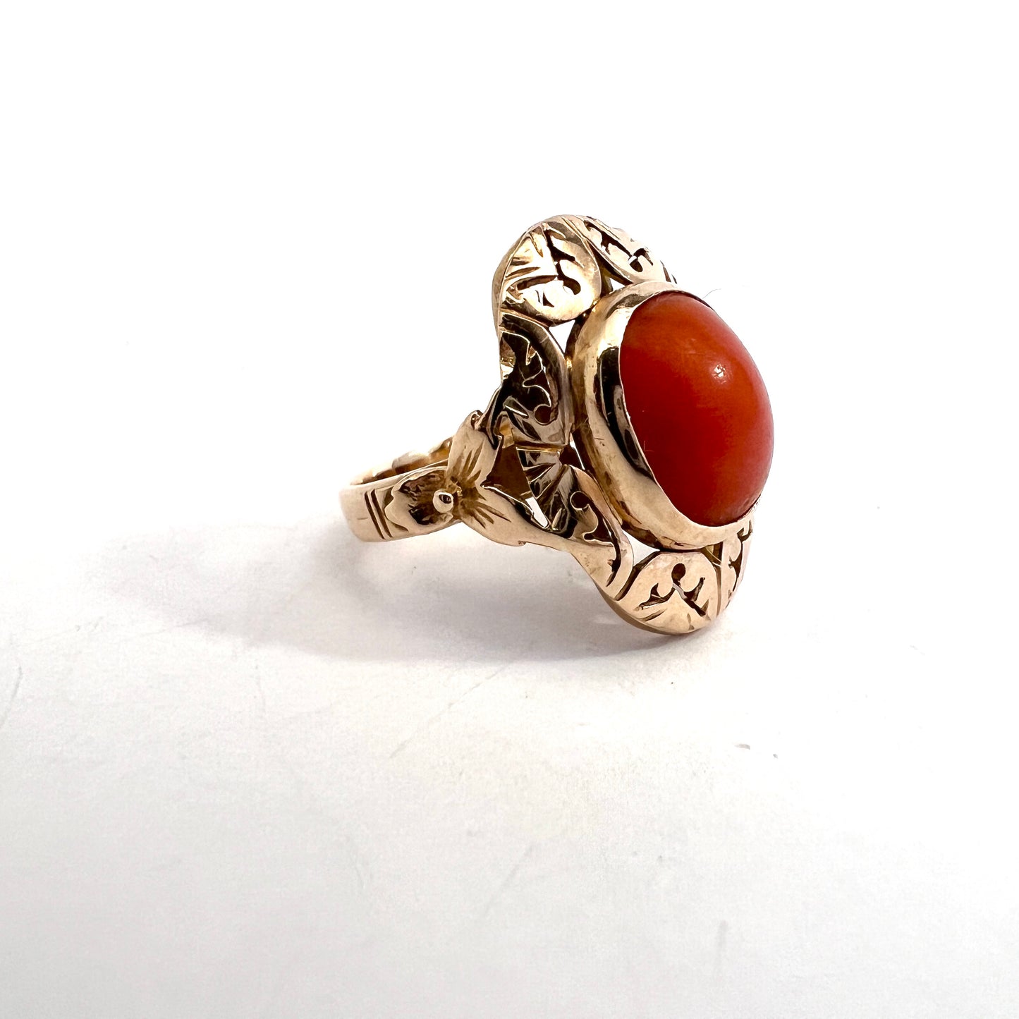 Warsaw Poland 1960s Bold 14k Gold Coral Ring.