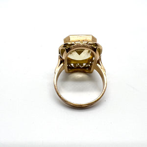 Warsaw Poland 1960s Bold Vintage 14k Gold Citrine Cocktail Ring.