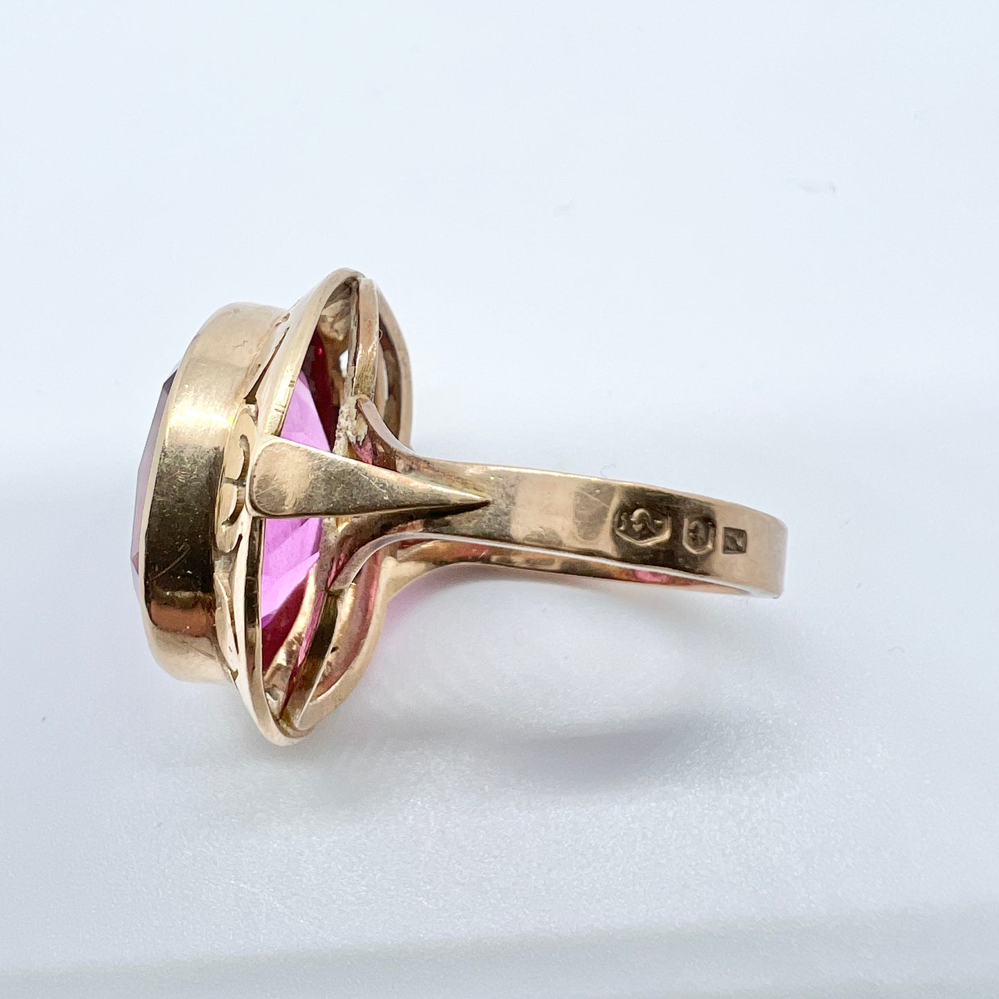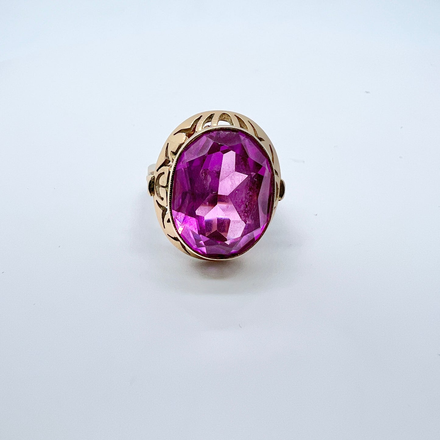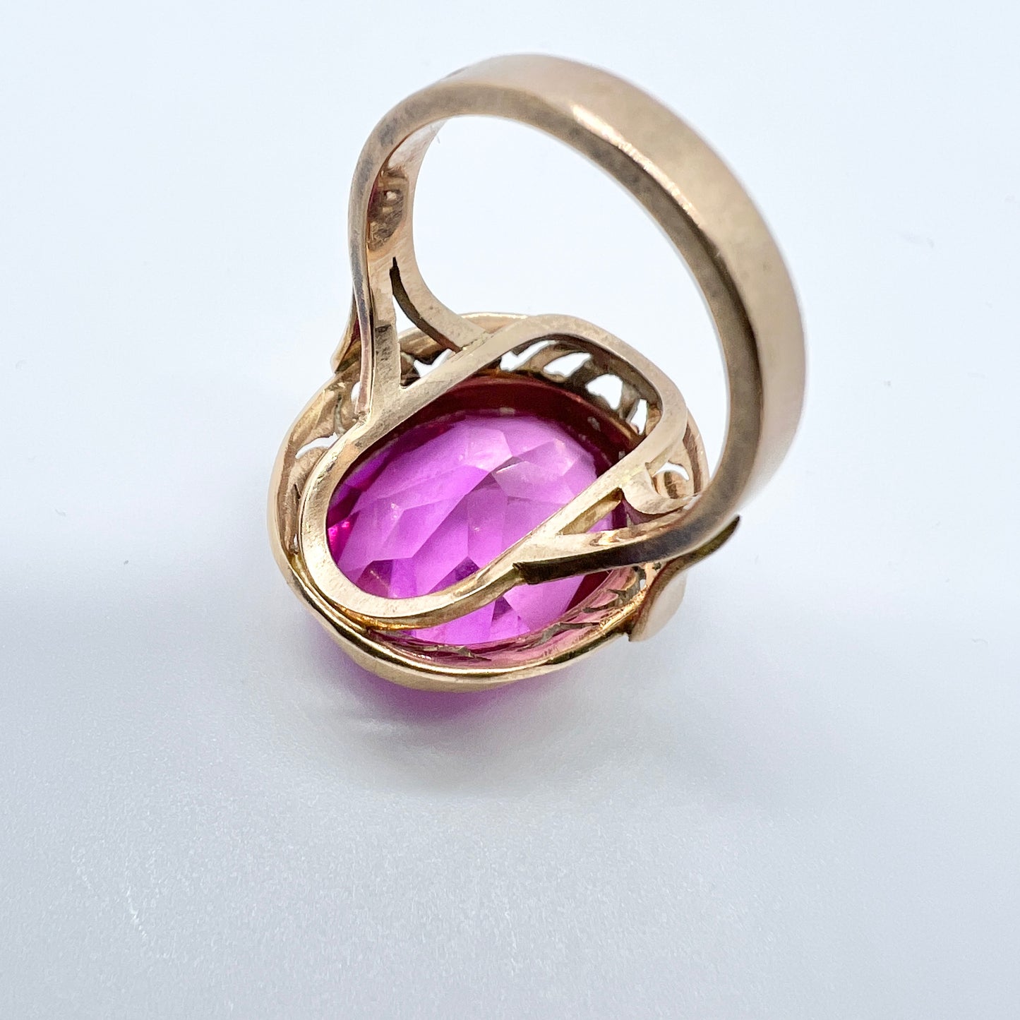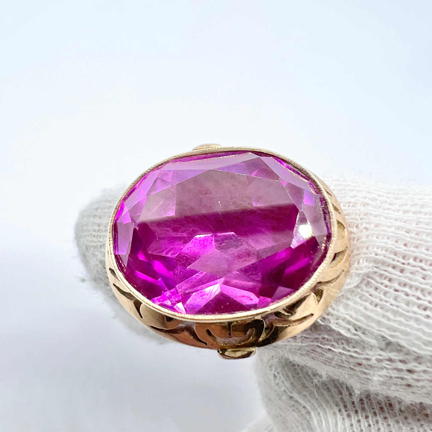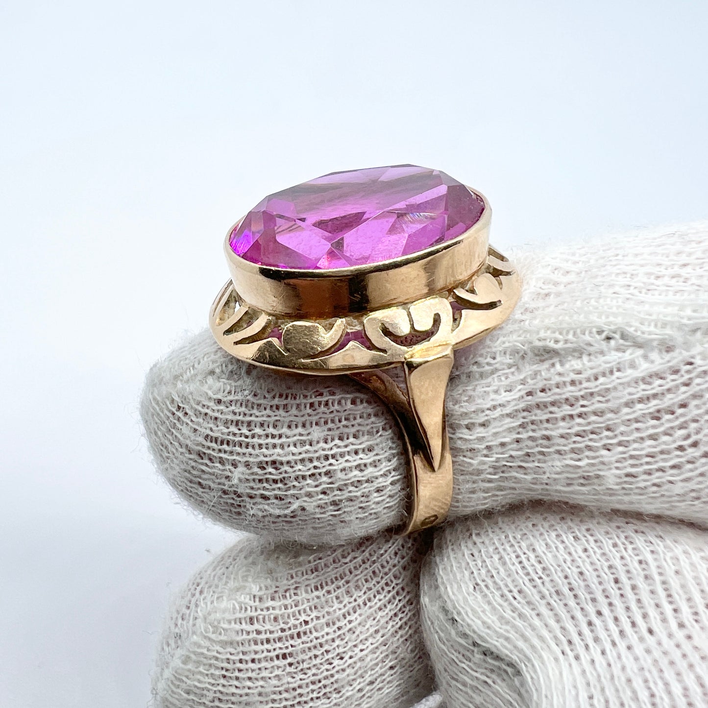 Warsaw, Poland. Vintage 1960-70s. Bold 14k Gold Pink Synthetic Sapphire Ring.