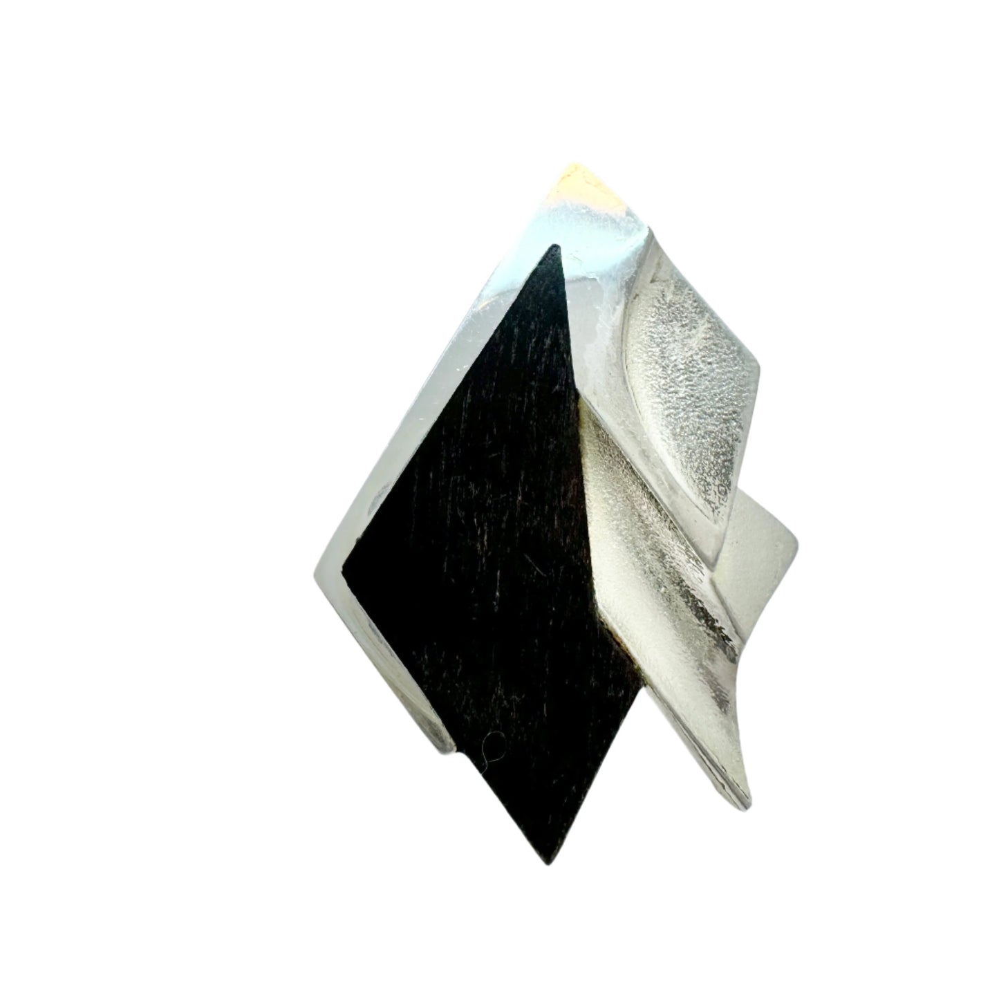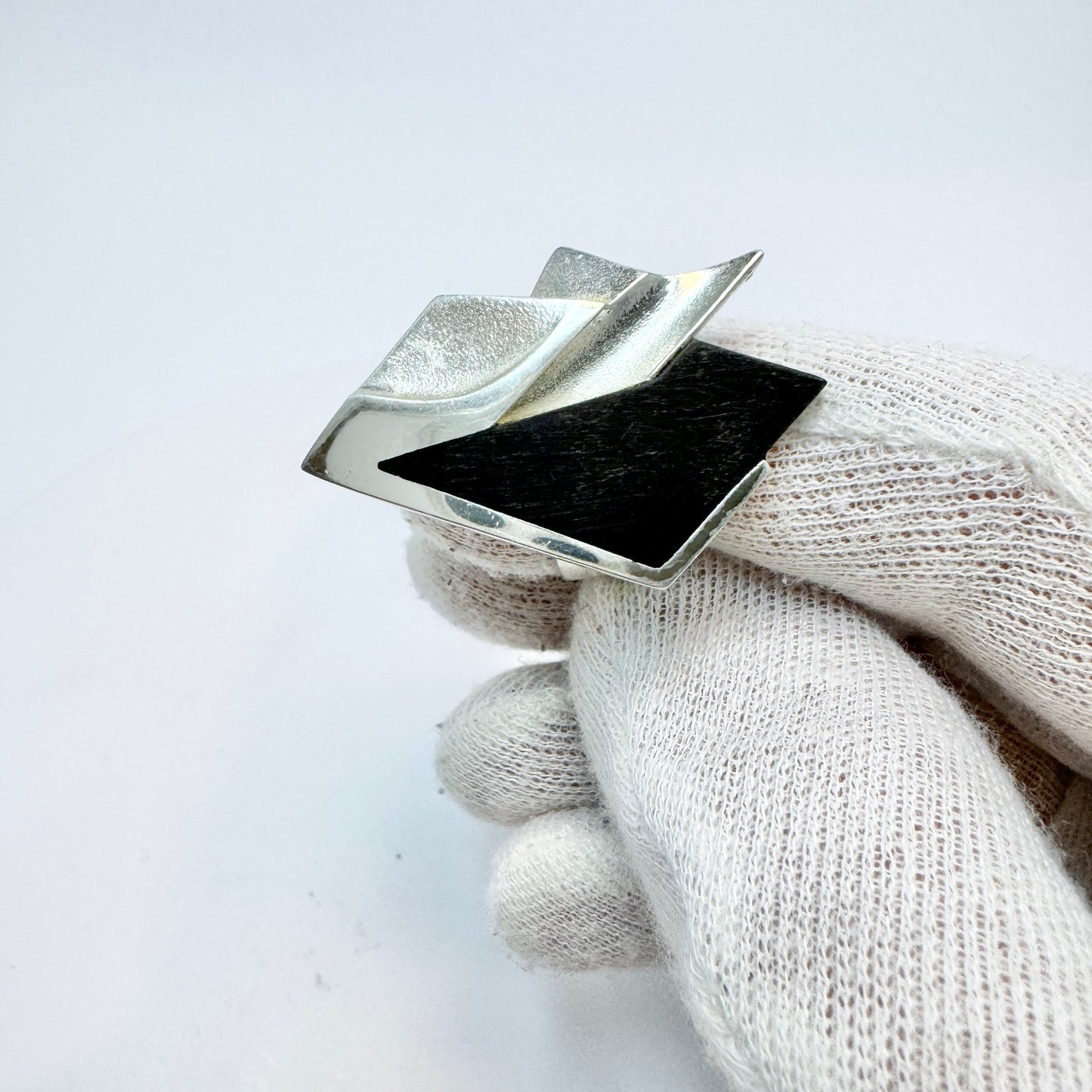 Zoltan Popovits for Lapponia, Finland 1983. Bold Vintage Sterling Silver Ebony Ring.